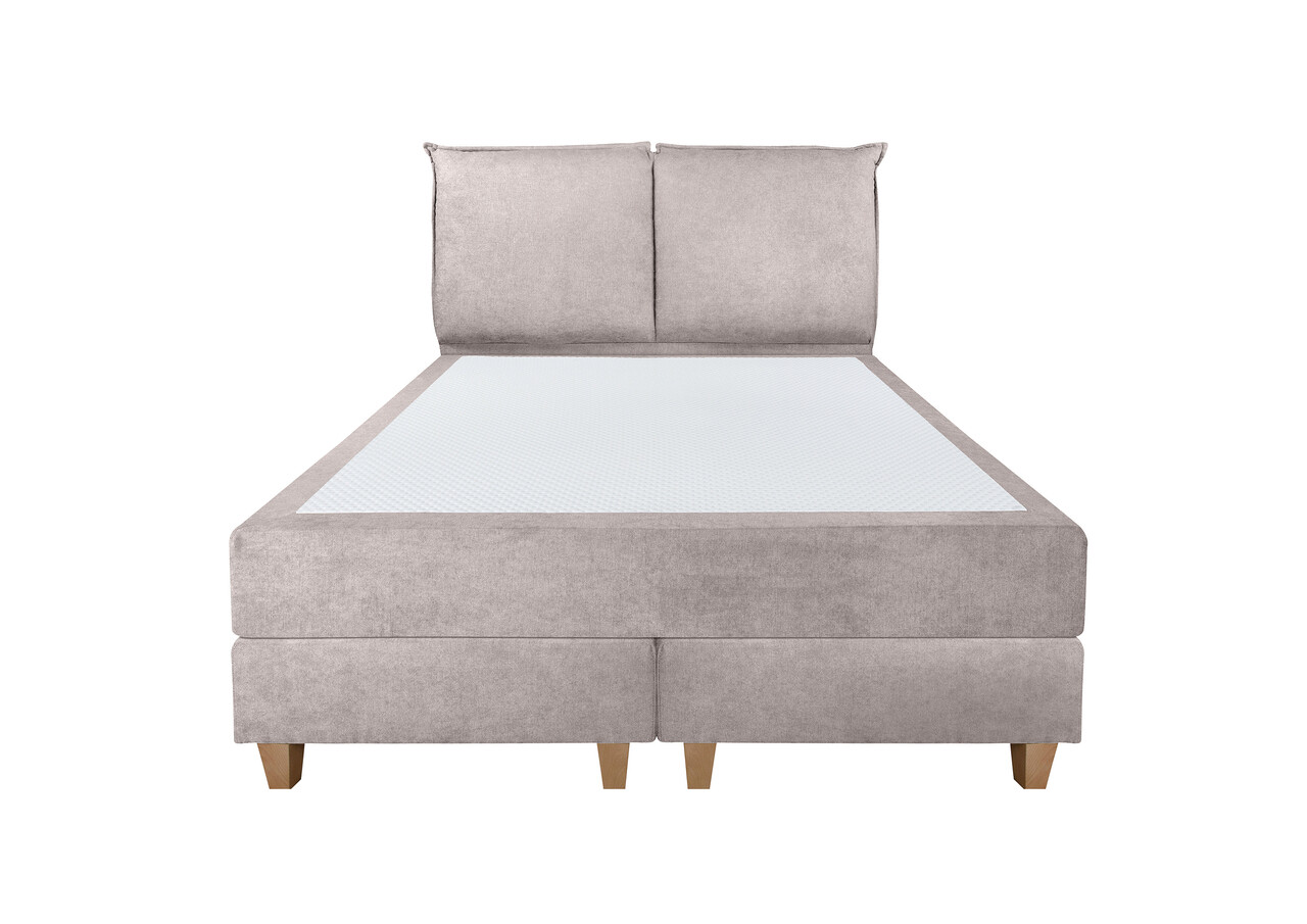 Pat matrimonial, Stockholm, Pillows E, 140x200 cm, saltea tip Pocket, topper memory, Taupe