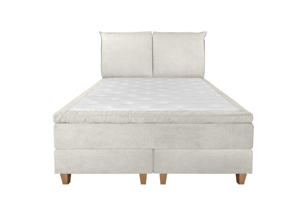 Pat matrimonial, Stockholm, Pillows E, 140x200 cm, saltea tip Pocket, topper memory, Bej