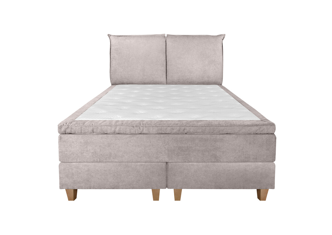 Pat matrimonial, Stockholm, Pillows E, 160x200 cm, saltea tip Pocket, topper memory, Taupe