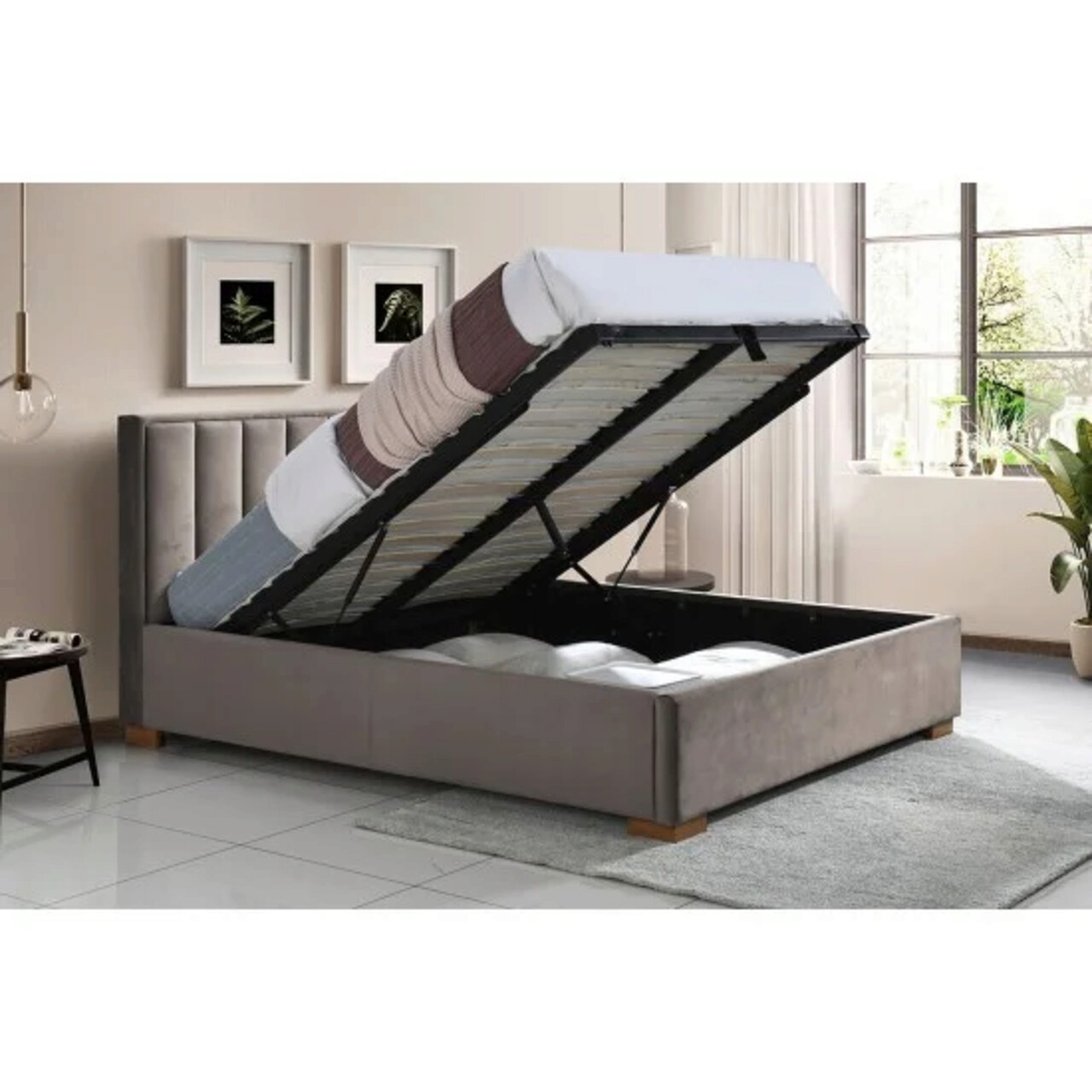 Pat matrimonial tapitat, cu tablie si lada depozitare Marani Velvet, Signal, 160x200 cm, catifea, bej