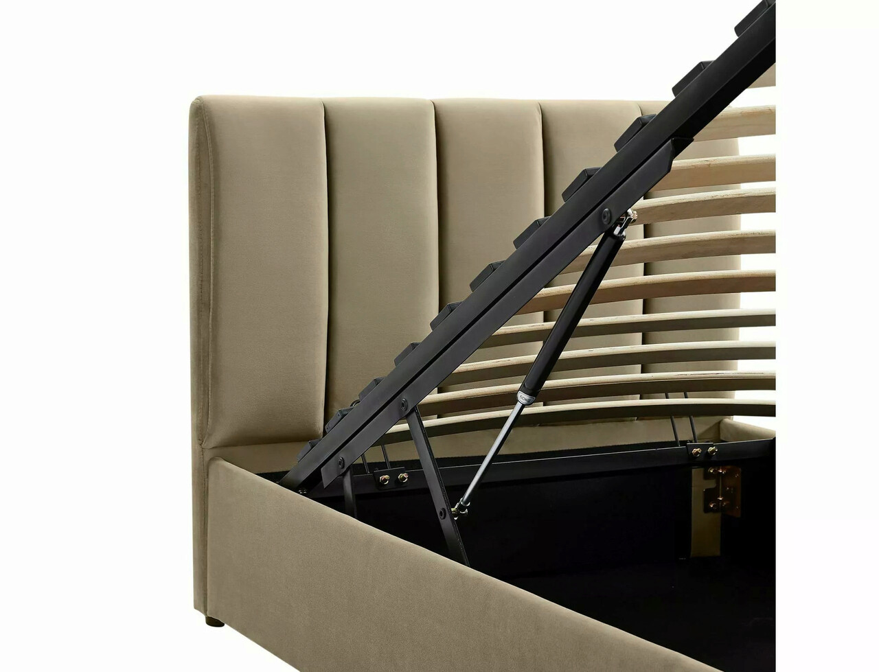 Pat matrimonial tapitat, cu tablie si lada depozitare Montreal Velvet, Signal, 160x200 cm, catifea, bej