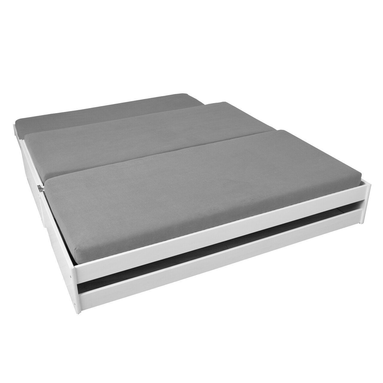 Fie ca este vorba de o camera de oaspeti sau de o camera a copilului pentru prietenii lor de culcare, acest pat functional se adapteaza oricarei situatii. Patul din lemn masiv se transforma instantaneu in mai multe suprafete de dormit, oferind spatiu amplu pentru vise dulci. Aceasta canapea extensibila unica ofera trei spatii de dormit. Rabatarea cadrului superior creeaza un pat dublu. O suprafata suplimentara de dormit poate fi scoasa ca un sertar atunci cand este nevoie. Lacul alb este durabil, usor de curatat si hidrofug. Fibrele naturale ale lemnului sunt vizibile prin lac. Lemnul masiv de pin folosit la fabricarea Lotar indeplineste cele mai recente standarde europene de calitate. Acest pat functional robust impresioneaza prin durabilitatea ridicata si constructia solida. Somiera cu sipci inclusa: Da.