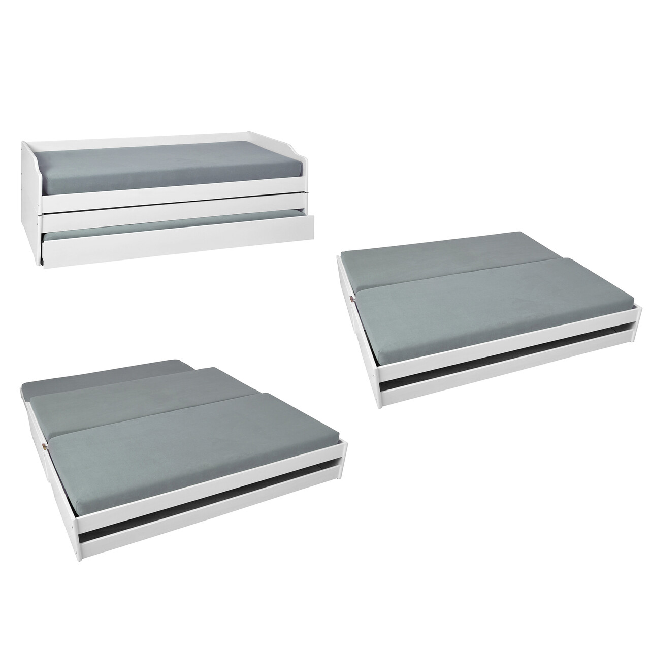 Pat multifunctional 3 in 1 pentru o persoana, 90x200 cm, Lotar, Inter Link, lemn, alb