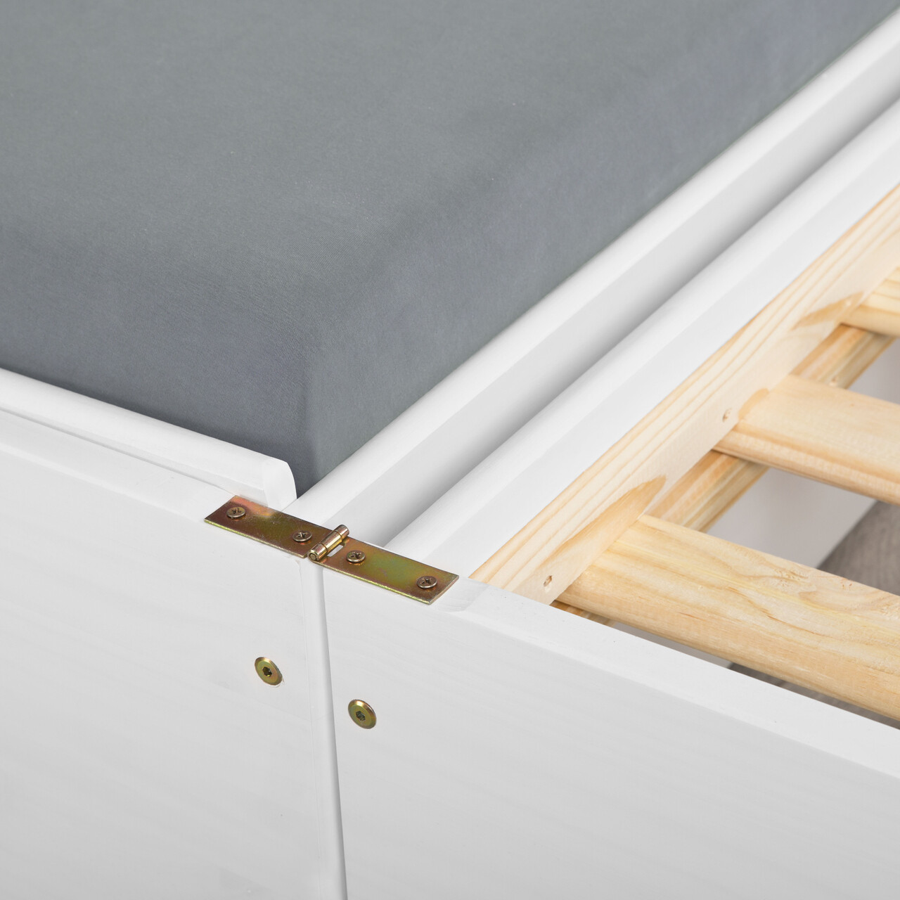 Acest pat functional este fabricat din lemn masiv de pin (pin parfumat) si finisat cu un lac alb. Fibrele sunt inca vizibile, evidentiind caracterul natural al lemnului. Lemnul de plantatie sustenabil, ecologic si organic ofera caldura, confort si o atmosfera primitoare. Experimentati senzatia pura a lemnului natural autentic.