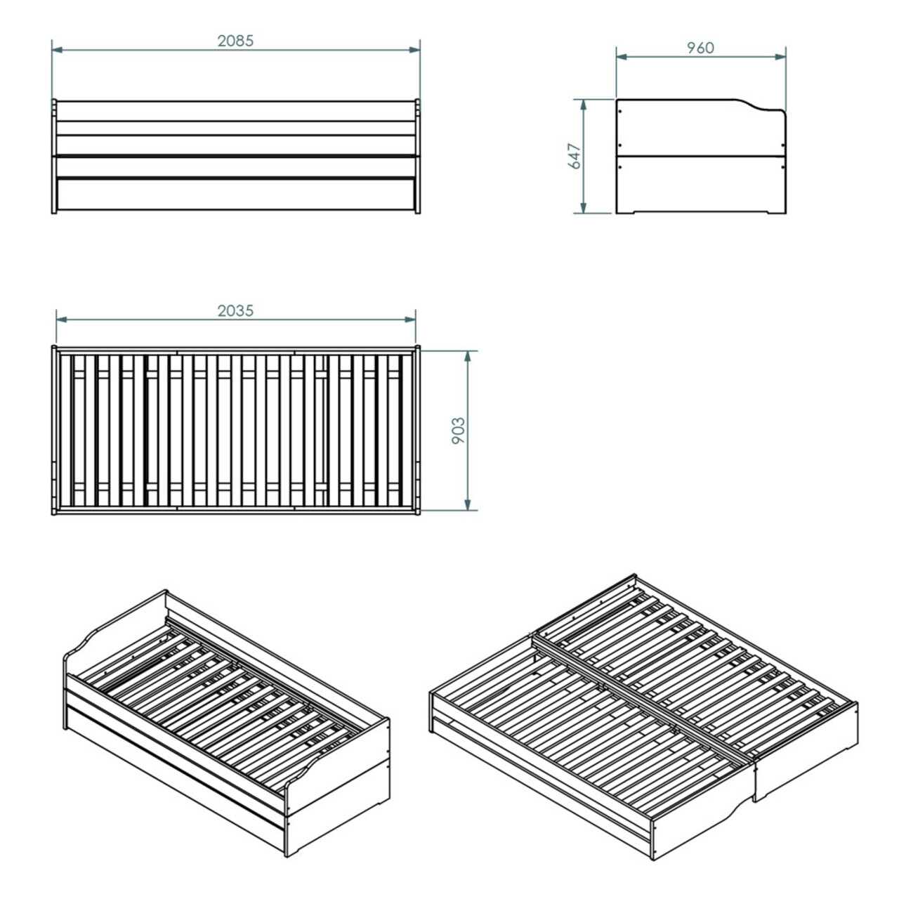Suprafata pentru dormit: 90x200 cm