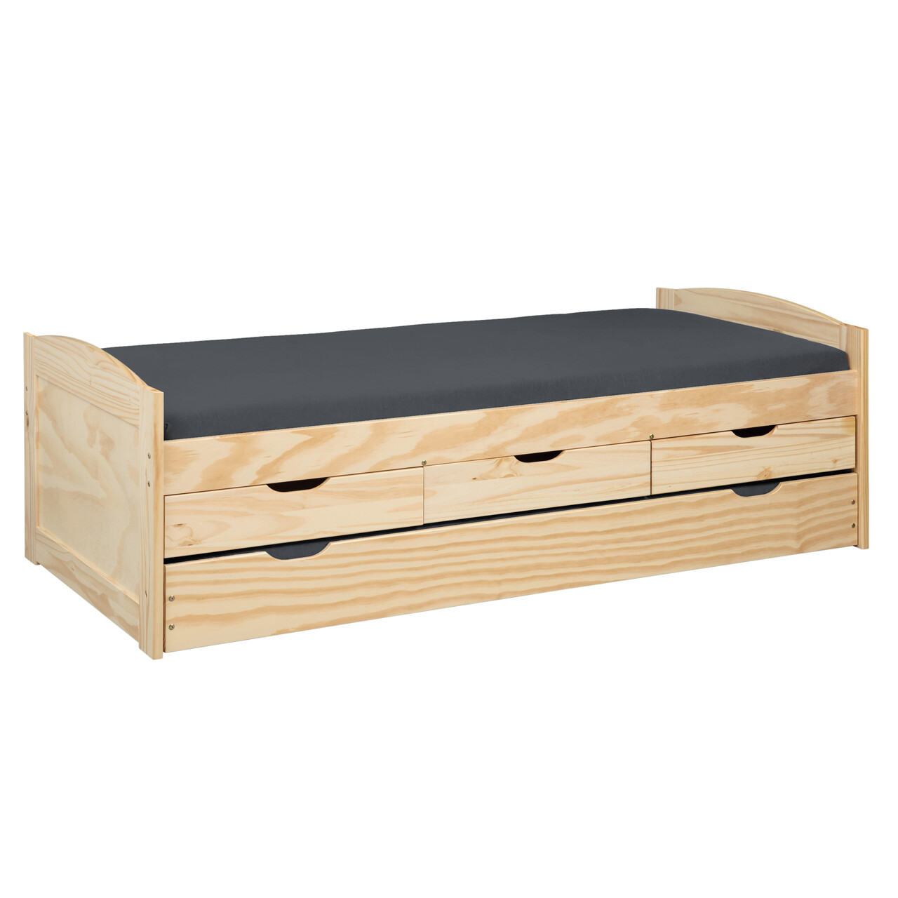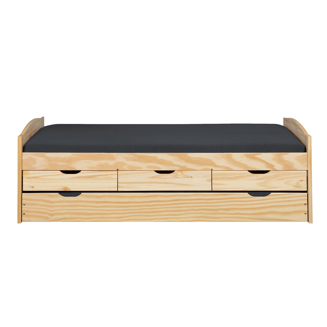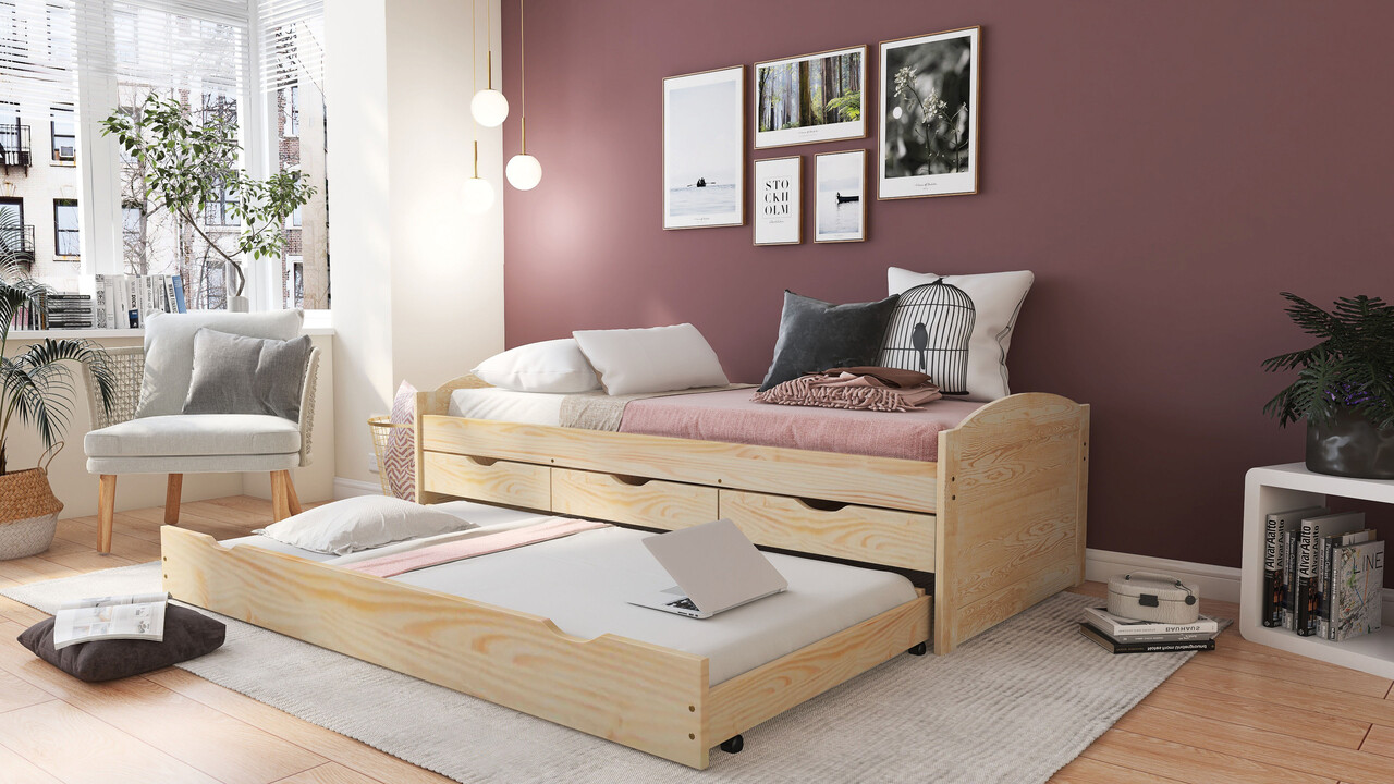 Acest pat flexibil si functional este ideal pentru camere mai mici, cum ar fi camerele copiilor sau camerele de oaspeti. Marinella este un pat functional din lemn masiv extrem de practic, care utilizeaza eficient spatiul de dedesubt cu un sistem de sertare si un pat suplimentar pentru oaspeti. Patul dispune de trei sertare in care articole precum lenjerie de pat, paturi sau alte bunuri pot fi depozitate direct in pat. O a doua suprafata de dormit de dimensiuni normale poate fi scoasa cu usurinta atunci cand este nevoie. Lacul transparent si durabil este usor de curatat si hidrofug. Fibrele lemnului sunt vizibile, ceea ce face ca acest pat functional sa atraga atentia in dormitorul dumneavoastra. Patul functional este fabricat din lemn masiv de pin imbinat prin indoire si indeplineste cele mai recente standarde de calitate. Somiera cu lamele inclusa: Da.