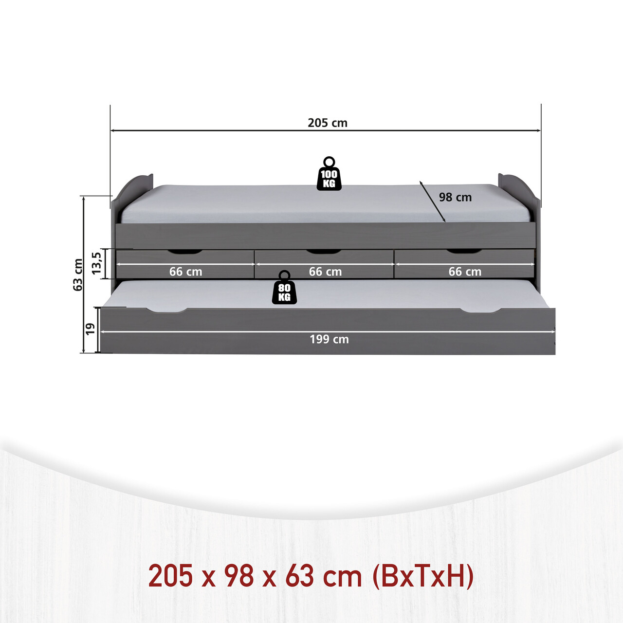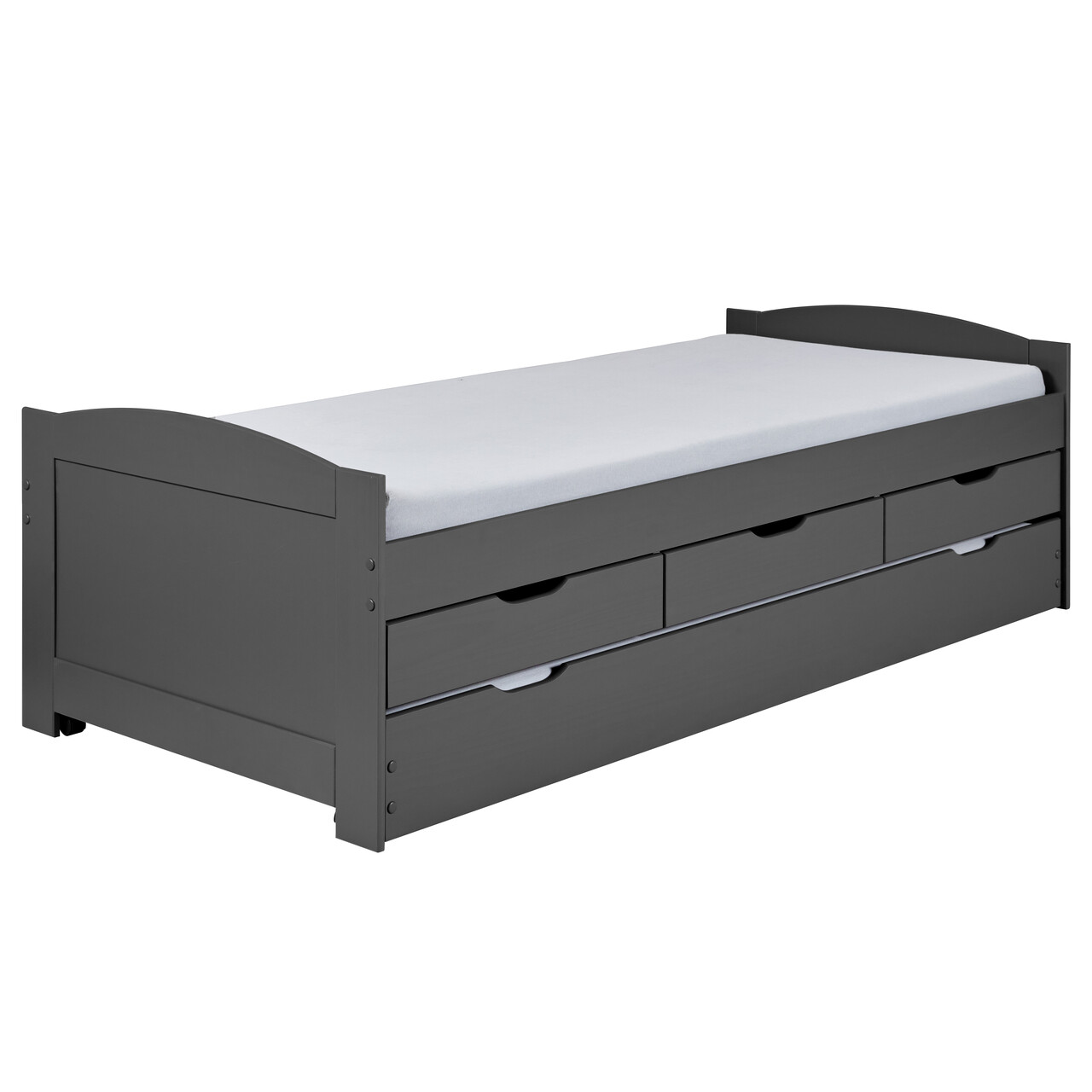 Indiferent daca este vorba de o camera de oaspeti sau de o camera pentru copii, acest pat functional, inteligent conceput, ofera economii enorme de spatiu. Patul Lena pentru tineri si copii este deosebit de practic. Sertarele au dimensiuni standard si pot fi aranjate in functie de nevoile dumneavoastra. Pentru a preveni acumularea de praf dedesubt, patul este complet inchis. Patul are trei sertare. Lenjerii de pat, paturi sau alte obiecte pot fi depozitate direct dedesubt. Lacul gri are un continut scazut de poluanti, este usor de curatat si hidrofug. Lacul a fost aplicat astfel incat fibra naturala a lemnului sa ramana subtil vizibila. Materialul utilizat (lemn natural masiv) indeplineste cele mai recente standarde europene de calitate. Numai prin utilizarea unor materiale atent selectionate se creeaza un pat robust si stabil. Pe langa economisirea spatiului, acest pat functional se mandreste cu o durabilitate ridicata si este o adevarata minune a economisirii spatiului! Cand este necesar, se poate crea un pat suplimentar pentru oaspeti intr-un spatiu foarte mic. Suprafata inferioara de dormit poate fi trasa sau folosita confortabil ca o canapea. Somiera cu sipci inclusa: Da.