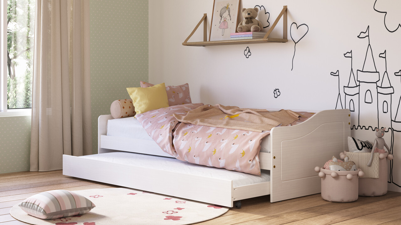 Acest pat pentru copii are multe functii, inclusiv un pat extensibil suplimentar pe roti, care poate fi folosit si pentru depozitare. Deoarece satisfactia clientilor este prioritatea noastra principala, toate piesele noastre de mobilier sunt fabricate in conformitate cu standardele de mediu si de calitate. Toate piesele noastre de mobilier sunt inovatoare, practice si durabile, asigurandu-le ca vor rezista multi ani.