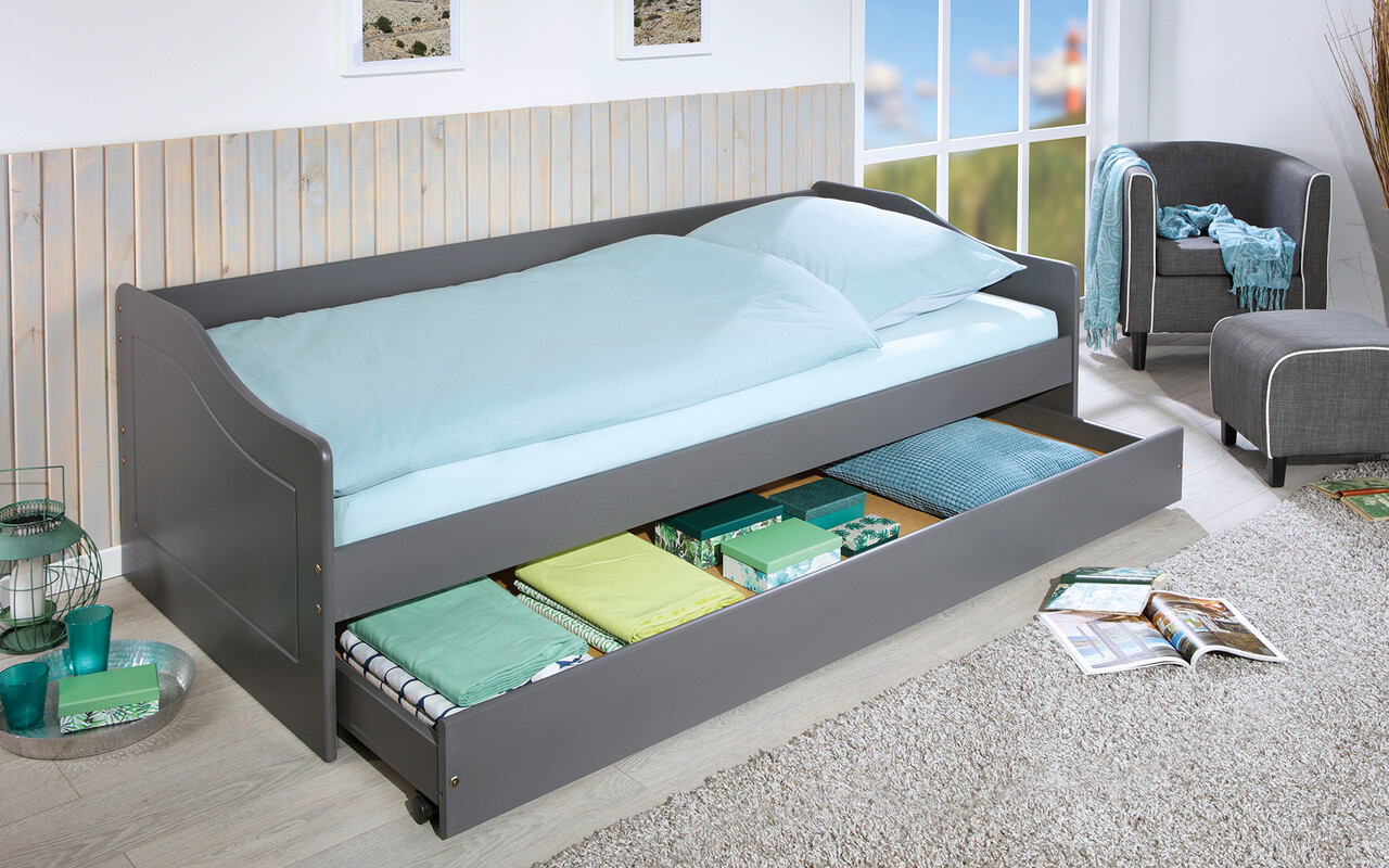 Pat multifunctional pentru o persoana, 90x200 cm, Malte, Inter Link, lemn, gri
