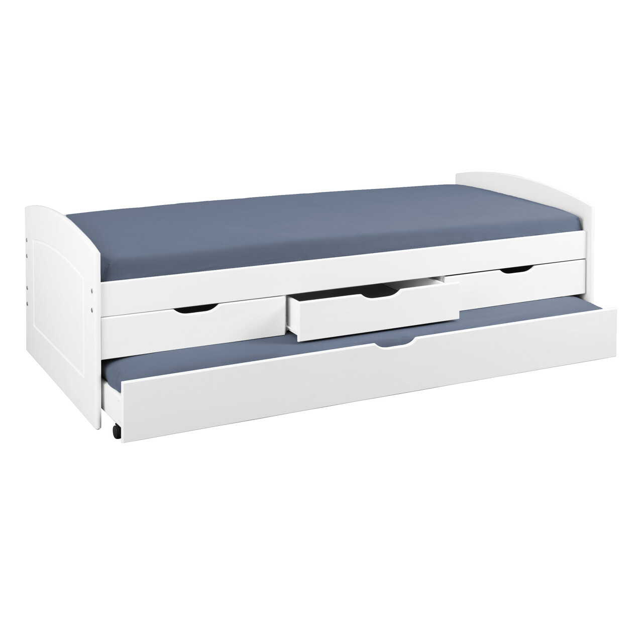 Pat multifunctional pentru o persoana, 90x200 cm, Rieka, Inter Link, lemn, alb