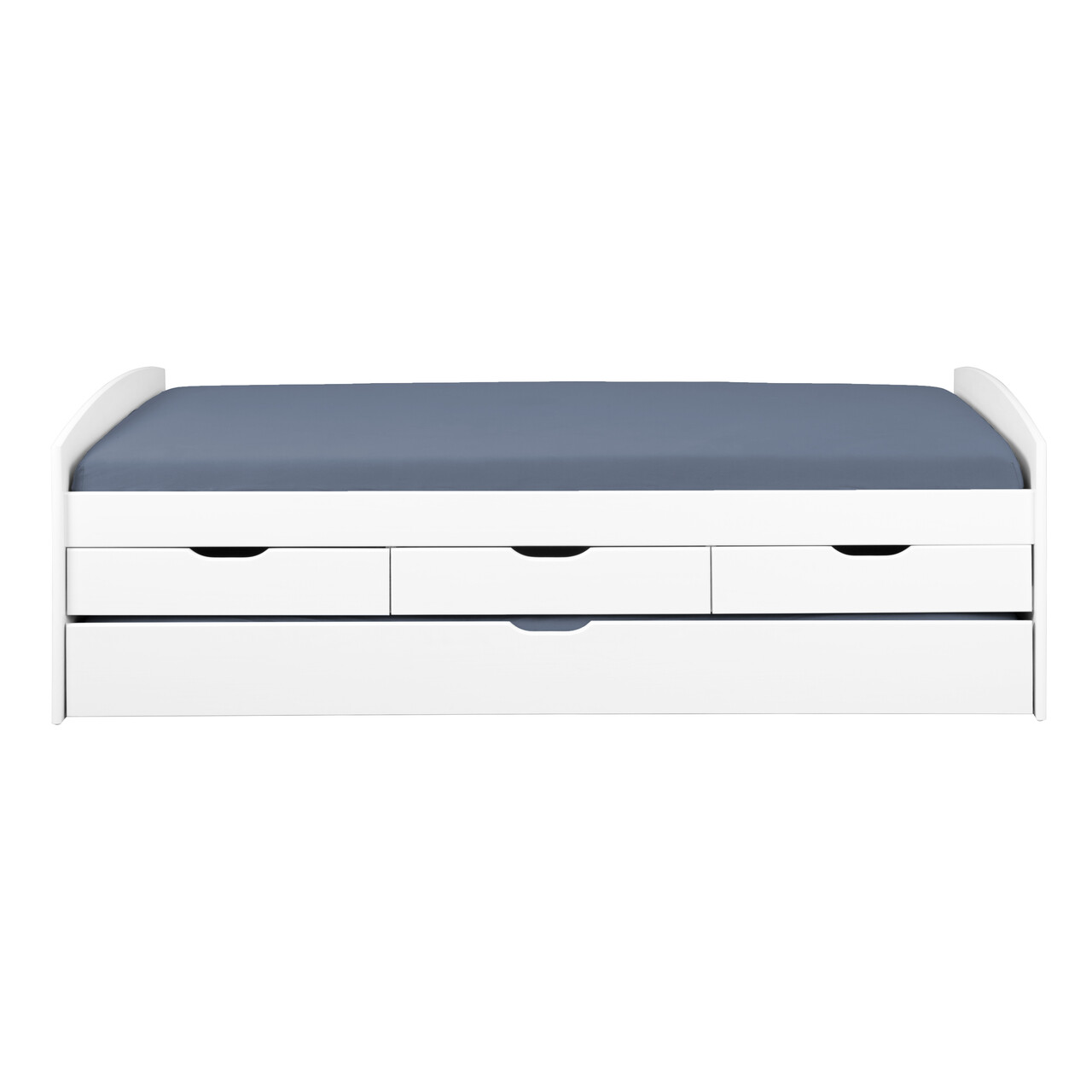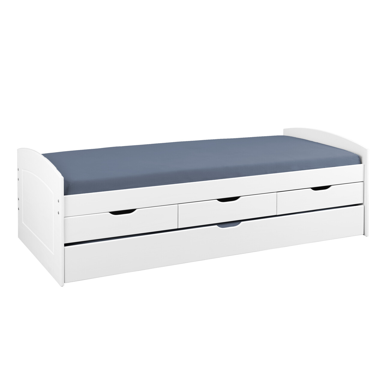 Indiferent daca este vorba de o camera de oaspeti sau de o camera pentru copii, acest pat functional inteligent conceput ofera economii enorme de spatiu. Patul functional Rieka este deosebit de practic. Sertarele au dimensiuni standard si pot fi aranjate in functie de nevoile dumneavoastra. Pentru a preveni acumularea de praf dedesubt, patul este complet inchis. Finisajul durabil din lac alb al modelului Rieka este hidrofug si deosebit de usor de curatat. Fibra naturala a lemnului se vede subtil prin vopseaua alba, punand in valoare lemnul de pin intr-un mod unic. Patul functional este fabricat din lemn masiv de pin imbinat in dinte si indeplineste toate standardele de calitate conform directivelor europene. Patul functional robust Rieka este fabricat folosind doar materiale de inalta calitate. Patul functional Rieka este deosebit de practic. Posibilitatea de a extinde spatiul de dormit atunci cand este nevoie este senzationala. O suprafata suplimentara de dormit poate fi scoasa ca un sertar, creand un alt spatiu de dormit in cel mai scurt timp. Somiera cu lamele inclusa: Nu.
