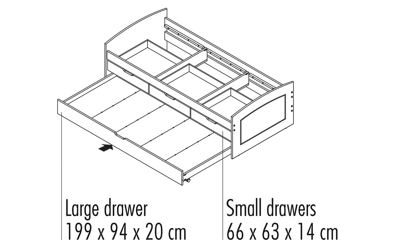 Acest pat pentru copii are multe caracteristici: un pat extensibil suplimentar pe roti, care poate fi folosit si pentru depozitare, si trei sertare suplimentare. Patul este hidrofug si usor de curatat. Deoarece satisfactia clientilor este prioritatea noastra principala, toate piesele noastre de mobilier sunt fabricate in conformitate cu standardele de mediu si de calitate. Toate piesele noastre de mobilier sunt inovatoare, practice si durabile, asigurandu-le ca vor rezista multi ani.