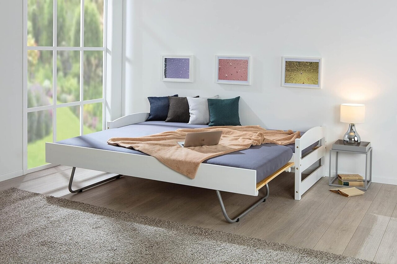 Pat multifunctional pentru o persoana, 90x200 cm, Vindas, Inter Link, lemn, alb