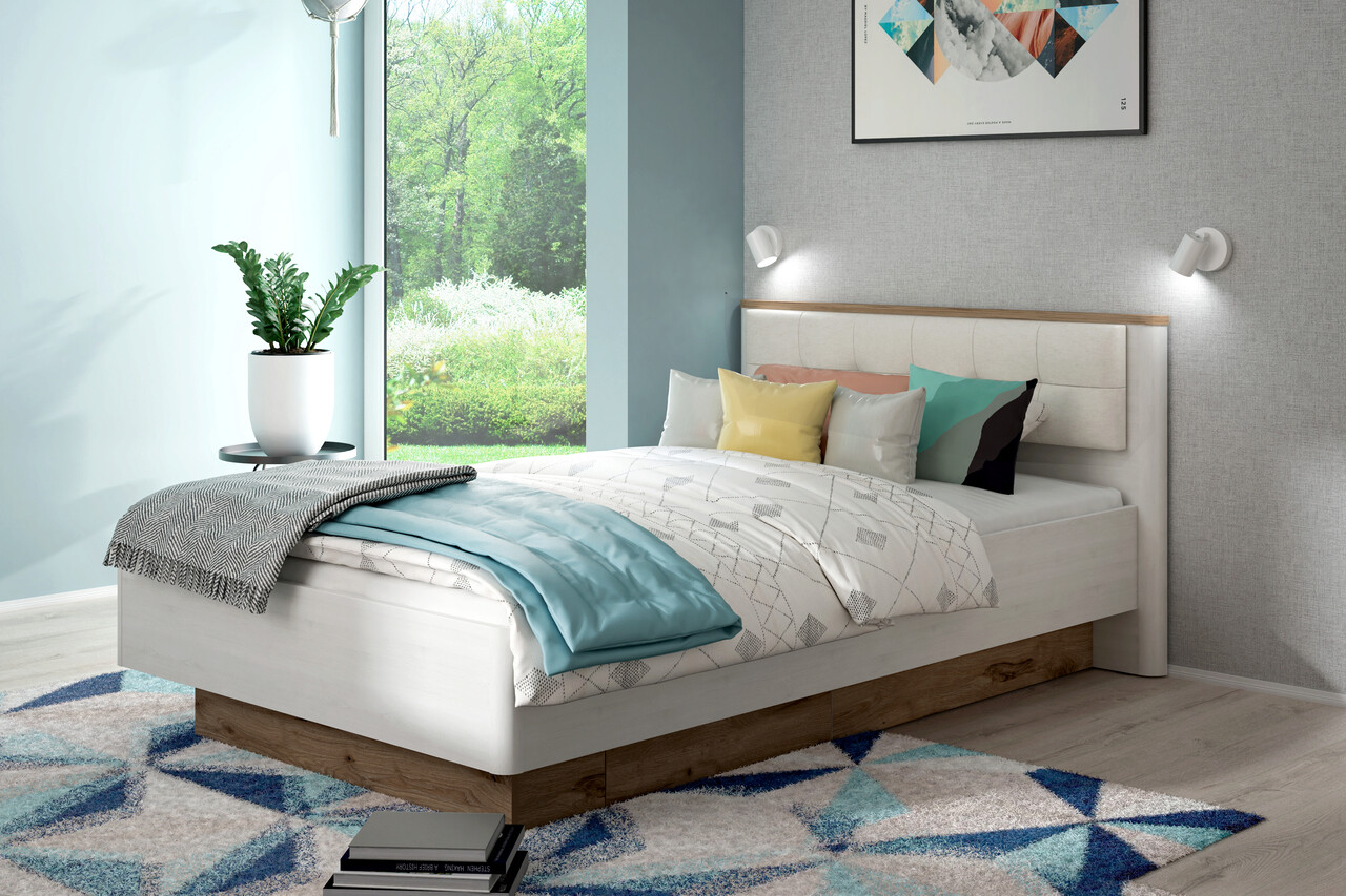Pat Oude, Bedora, 137.3x209x87.7 cm, PAL/MDF, alb/stejar