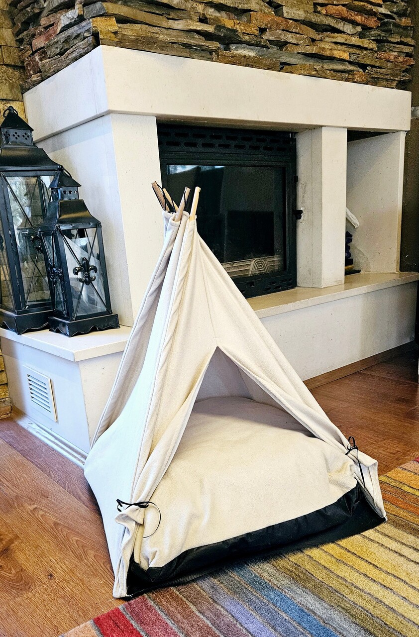 Pat pentru animale de companie, Valovi, Pet Çadır, 52x70x60 cm, Textil, Crem