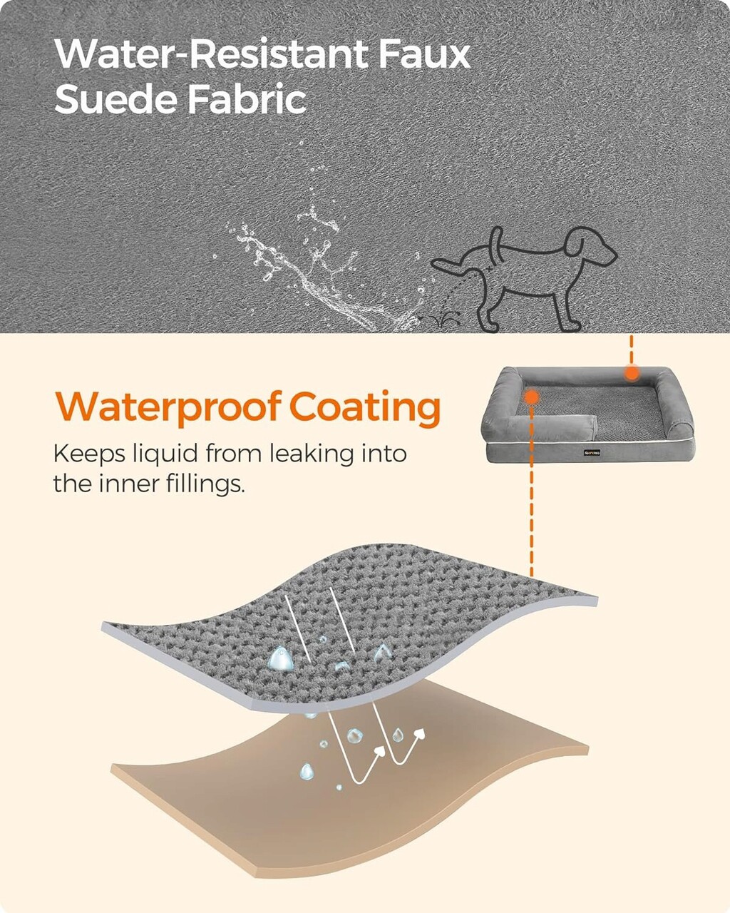 Rezistent la apa Nu va mai faceti griji cu privire la mici accidente. Suprafata de plus a acestui pat pentru caini este acoperita cu un strat impermeabil, ceea ce il face un element foarte util daca aveti un caine in varsta sau cu probleme de sanatate.