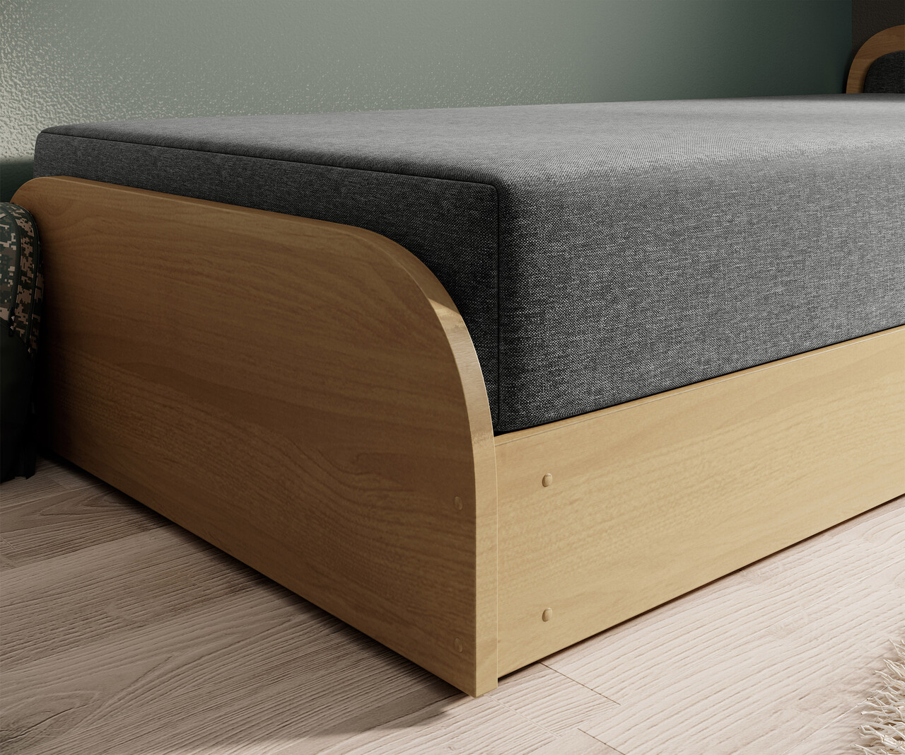 Pat pentru camera copilului, deschidere dreapta, 80x190 cm, ELTAP, PS-06, Parys, lemn/poliester, natur/gri