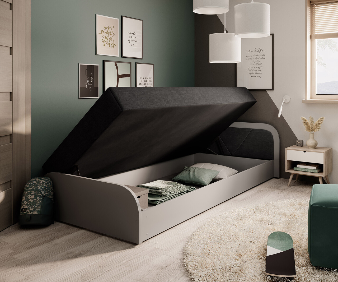 Pat pentru camera copilului, deschidere dreapta, 80x190 cm, ELTAP, RT-GR-04AL, Parys, lemn/poliester, gri deschis/negru