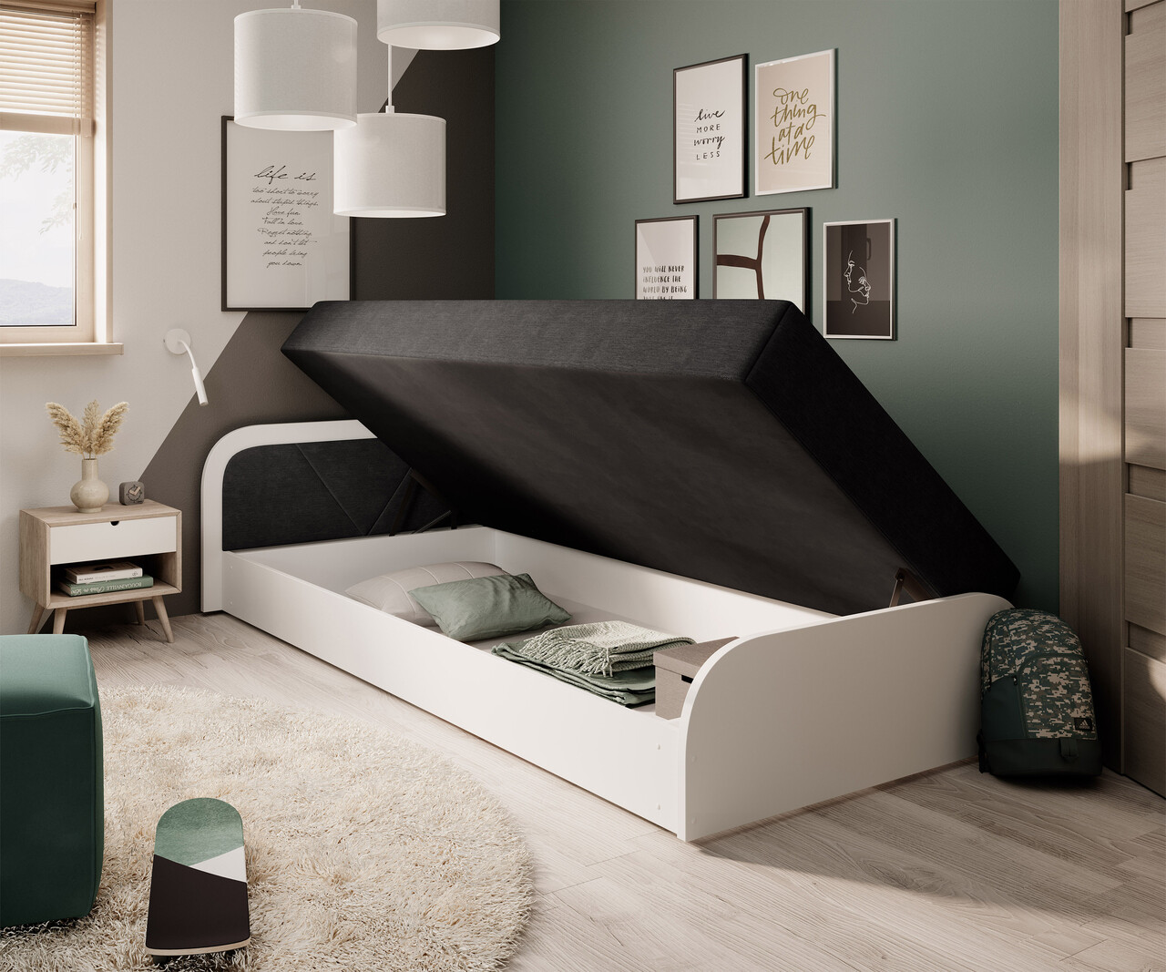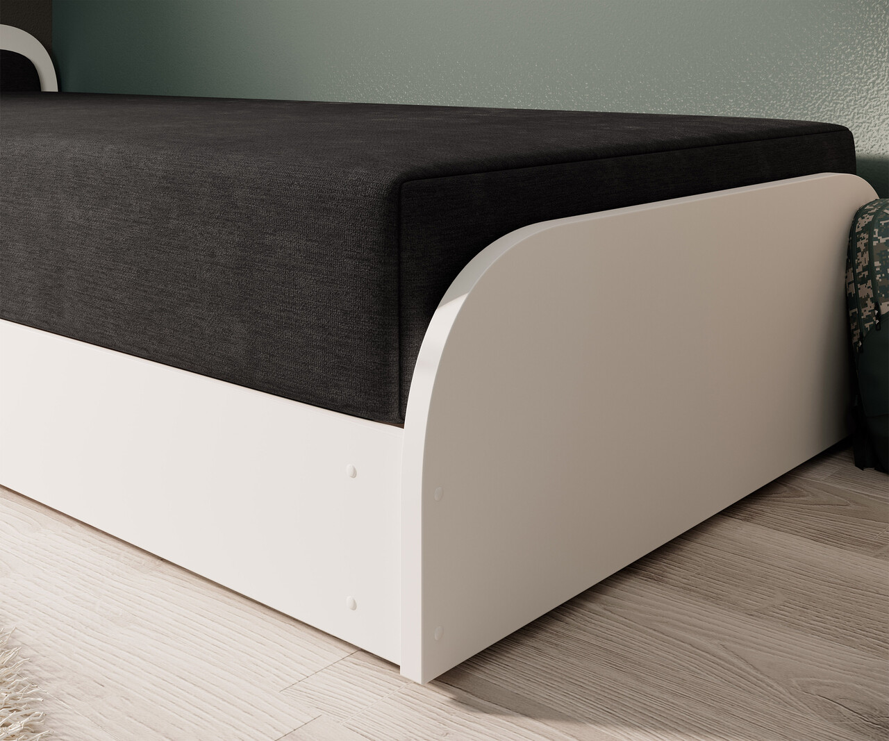 Pat pentru camera copilului, deschidere stanga, 80x190 cm, ELTAP, LT-W-04AL, Parys, lemn/poliester, alb/negru