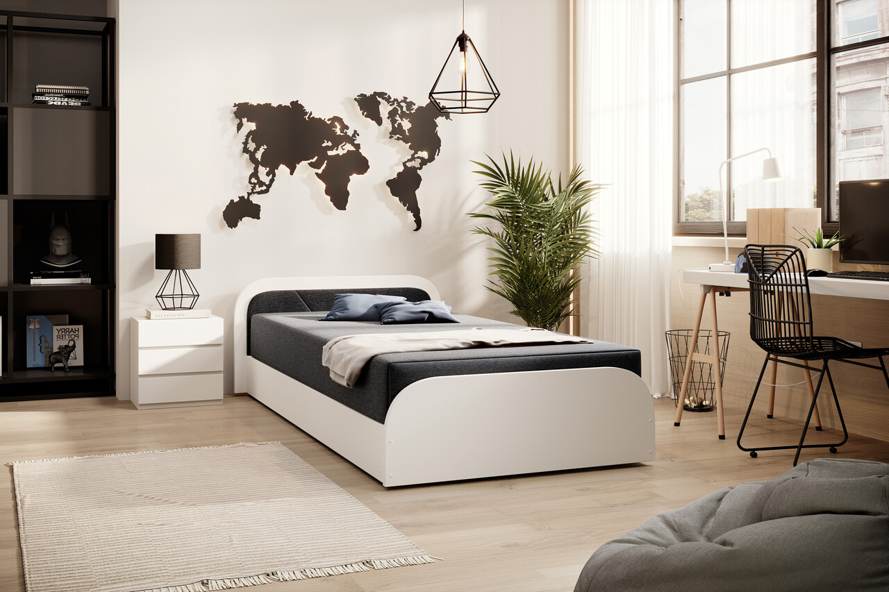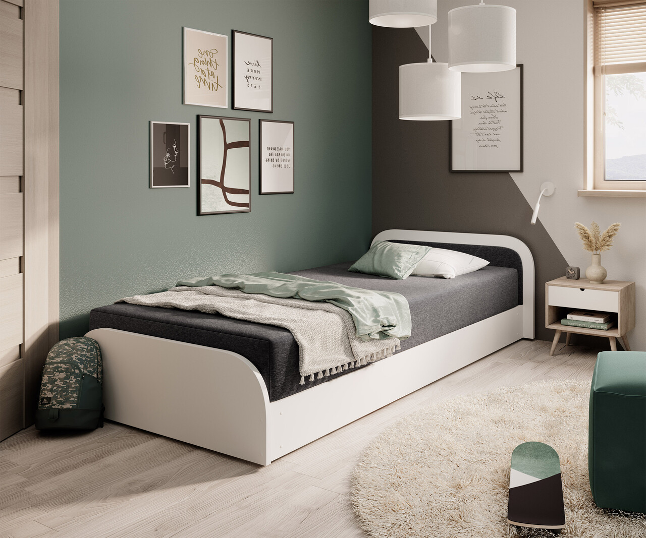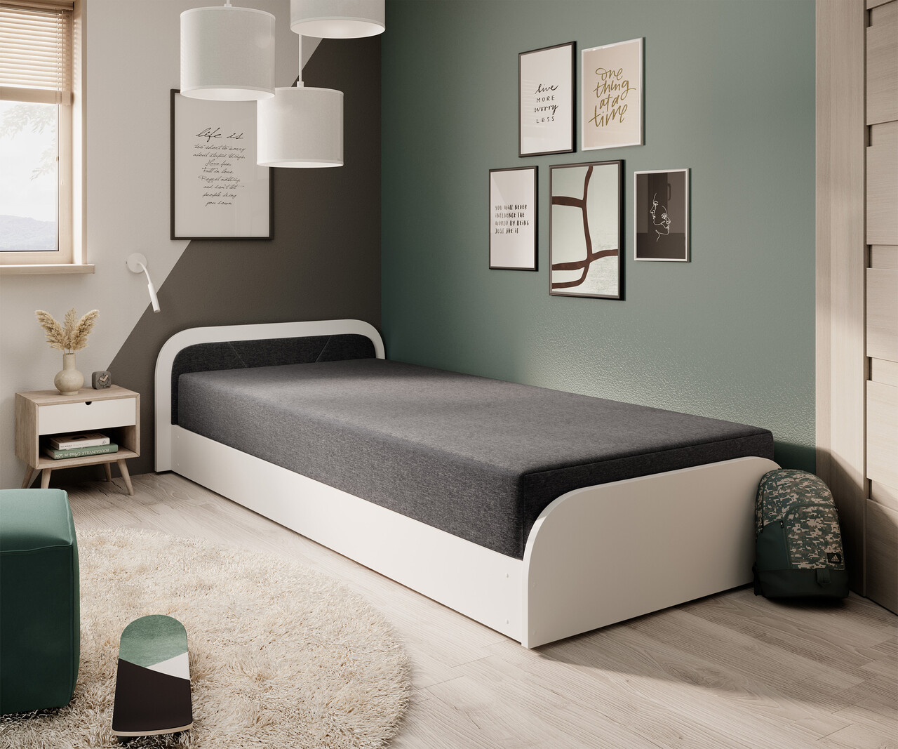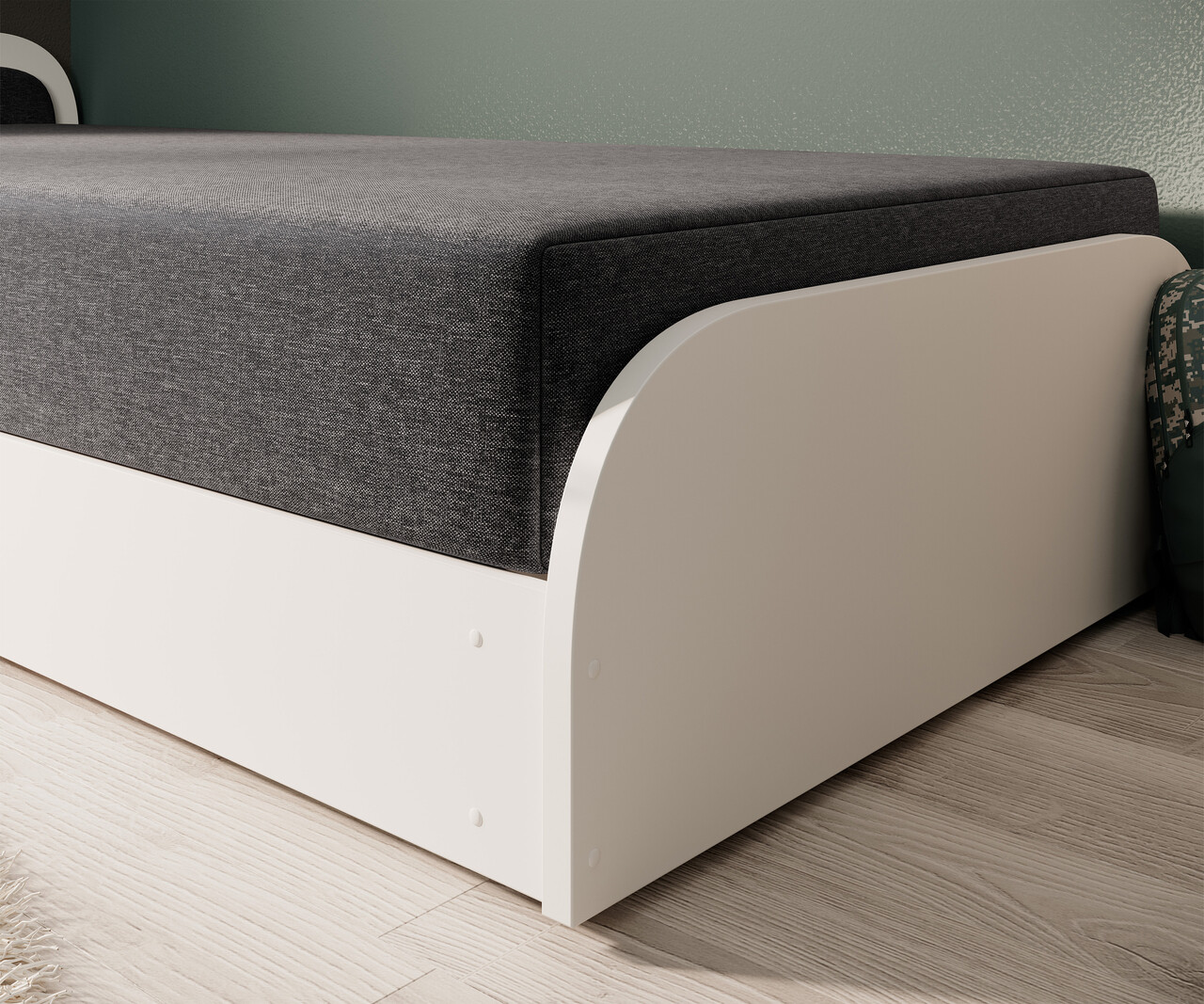 Pat pentru camera copilului, deschidere stanga, 80x190 cm, ELTAP, LT-W-05SA, Parys, lemn/poliester, alb/gri inchis