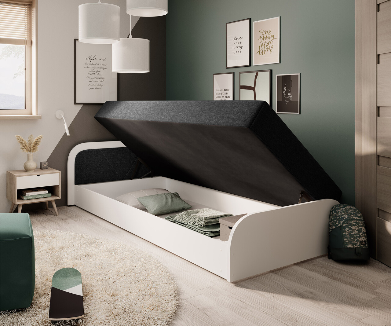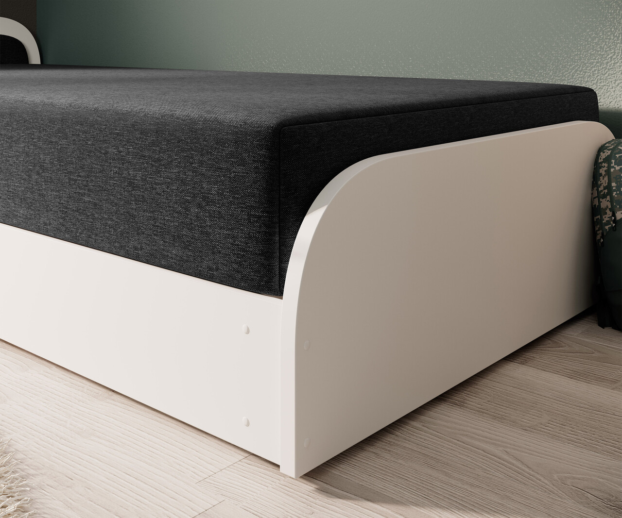 Pat pentru camera copilului, deschidere stanga, 80x190 cm, ELTAP, LT-W-14SA, Parys, lemn/poliester, alb/negru