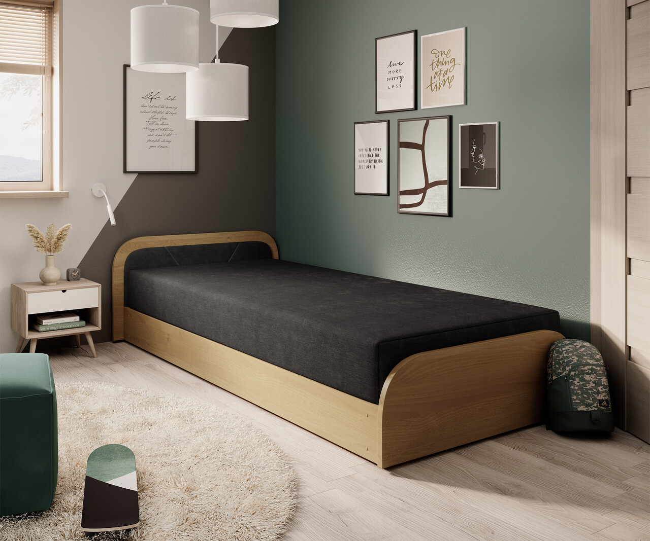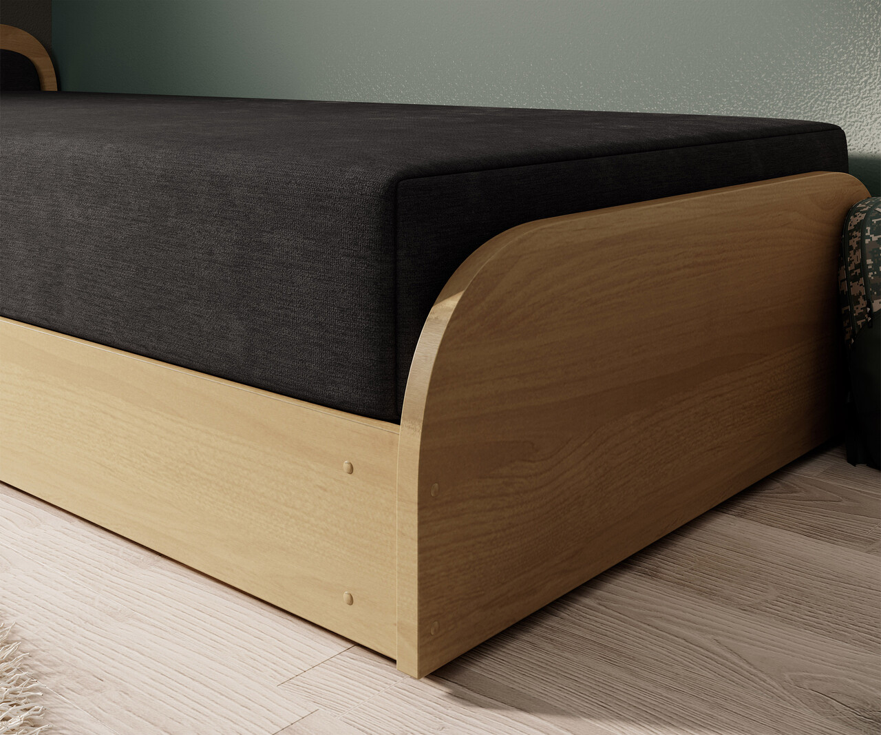 Pat pentru camera copilului, deschidere stanga, 80x190 cm, ELTAP, LT-BR-04AL, Parys, lemn/poliester, natur/negru