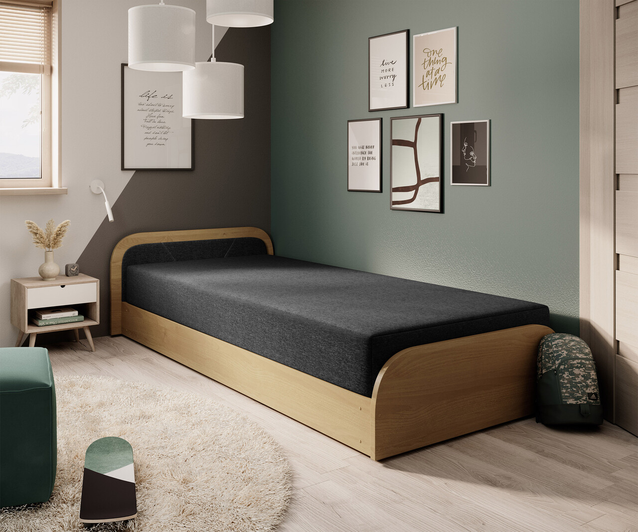 Pat pentru camera copilului, deschidere stanga, 80x190 cm, ELTAP, PS-11, Parys, lemn/poliester, natur/negru