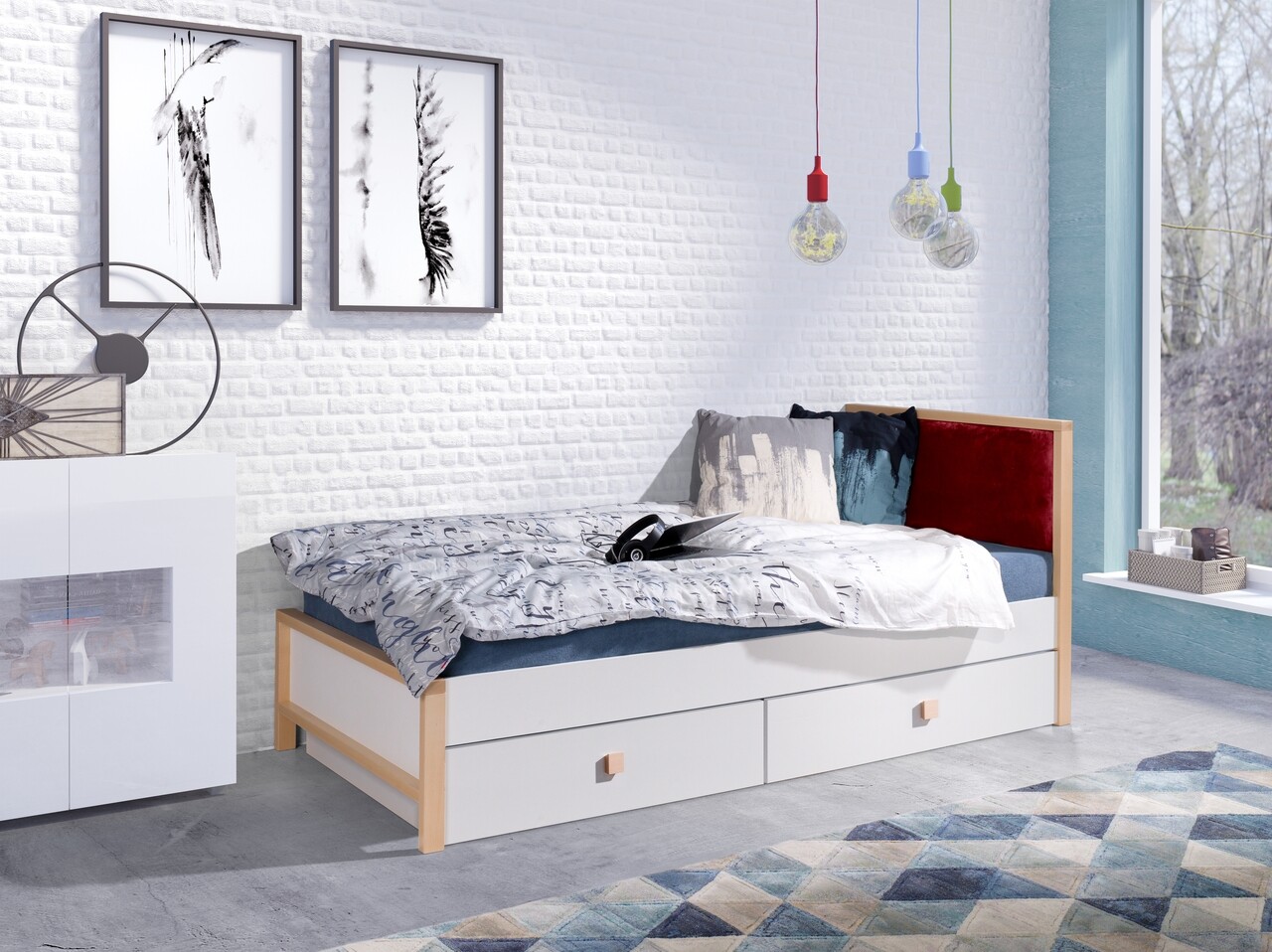 Pat pentru camera copilului Zara Quartz 202, Meblobed, cu 2 sertare, 80x180 cm, lemn de fag