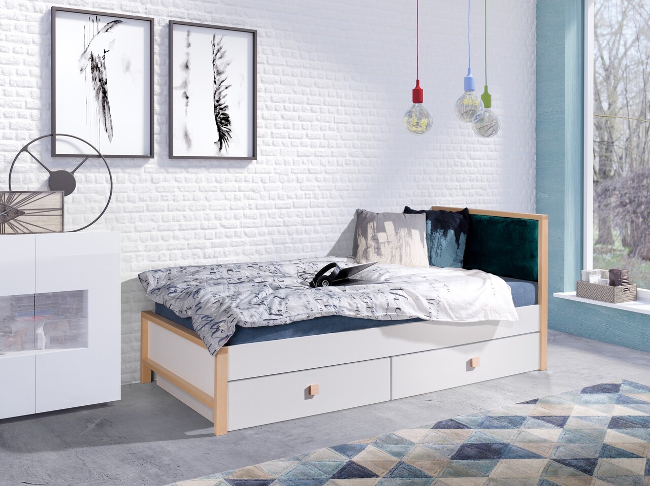 Pat pentru camera copilului Zara Quartz 601, Meblobed, cu 2 sertare, 80x180 cm, lemn de fag