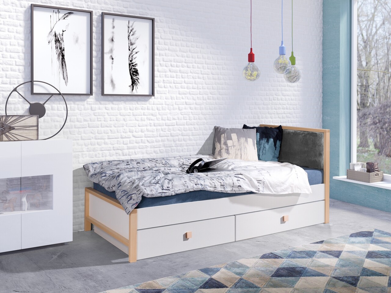 Pat pentru camera copilului Zara Quartz 806, Meblobed, cu 2 sertare, 80x180 cm, lemn de fag,