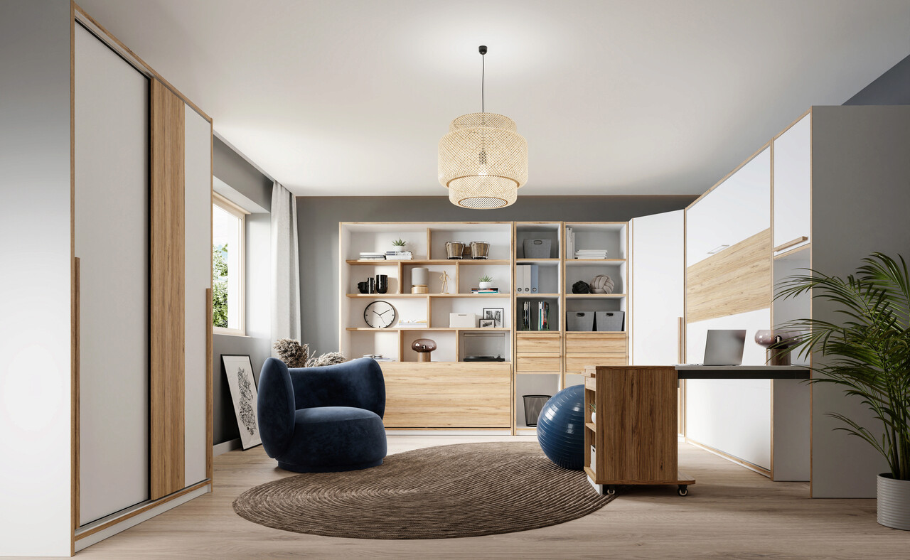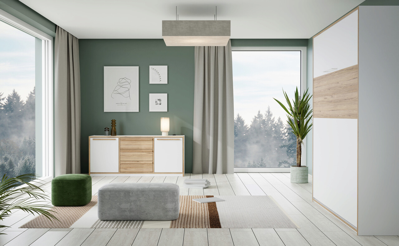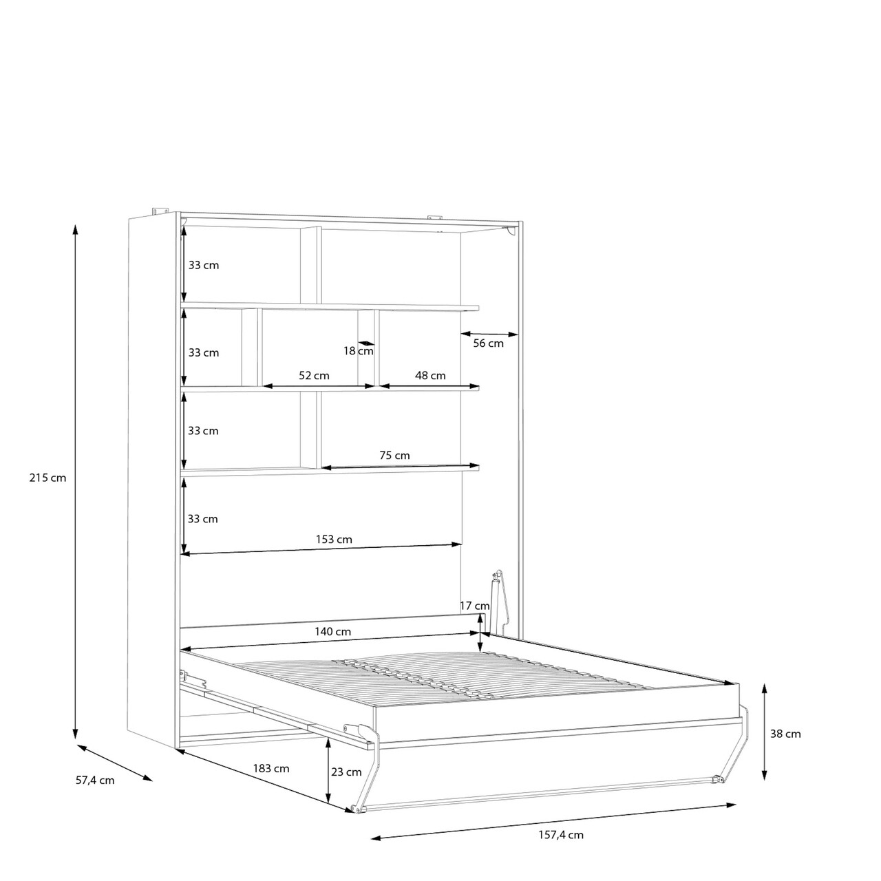 Pat rabatabil vertical Soest, Bedora, 157.4x200x215 cm, PAL/metal, alb/stejar
