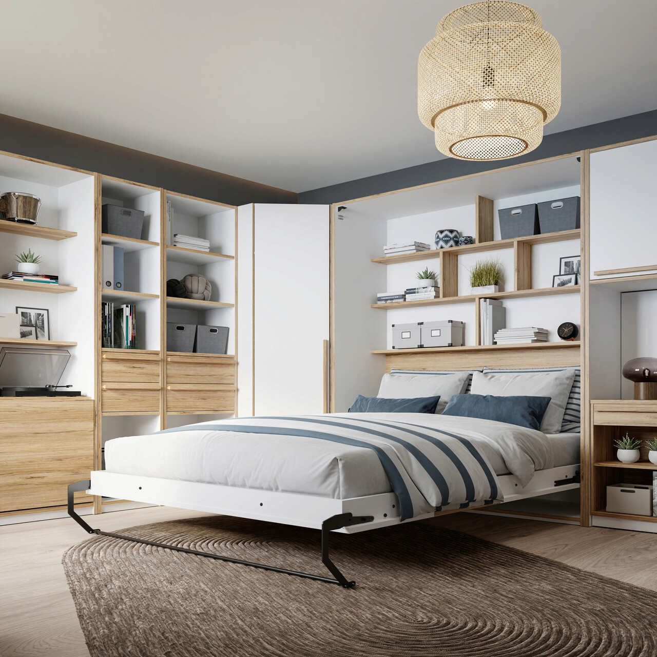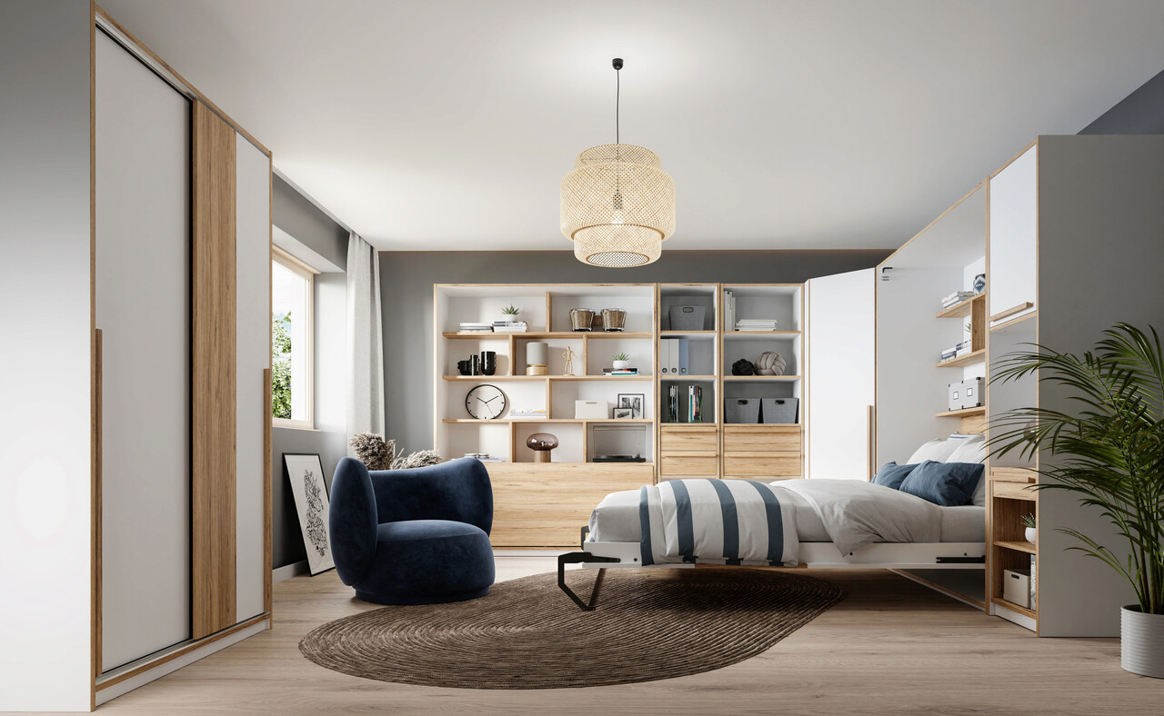 Pat rabatabil vertical Soest, Bedora, 173.6x200x215 cm, PAL/metal, alb/stejar