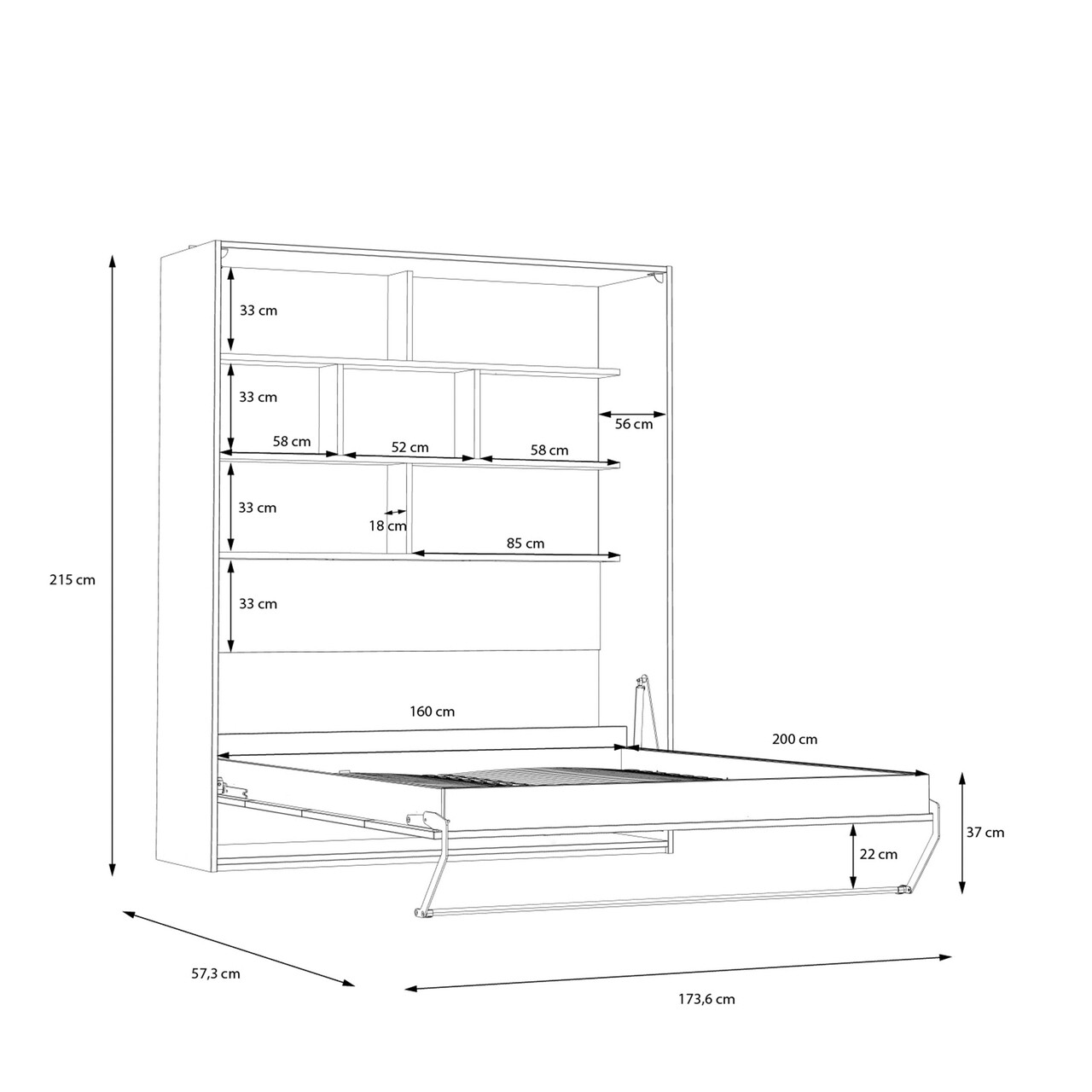 Dimensiuni pat pliat: 173.6x57.3x215 cm