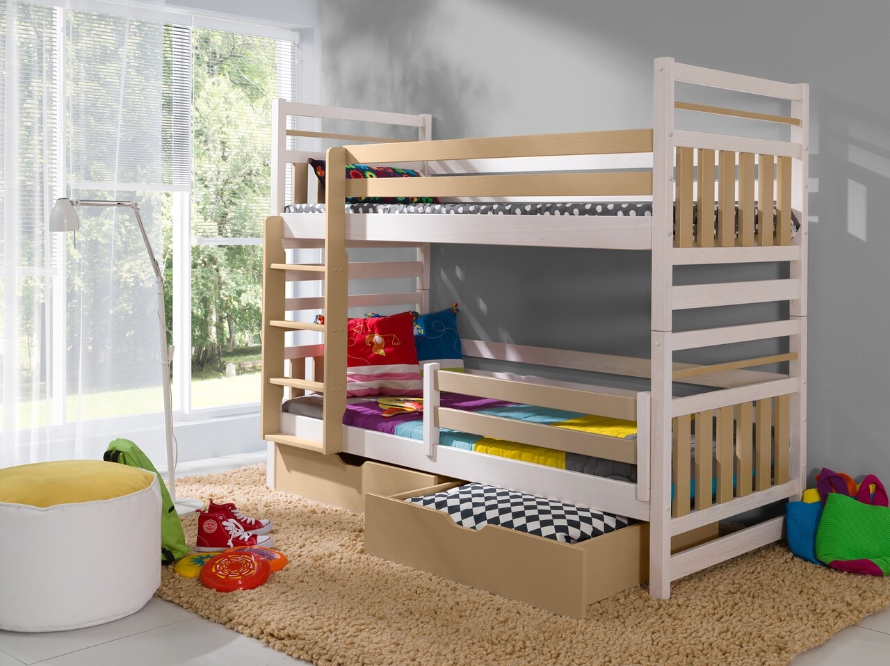 Pat supraetajat pentru camera copilului Miromir, Meblobed, cu 2 sertare, 80x180 cm, lemn de pin