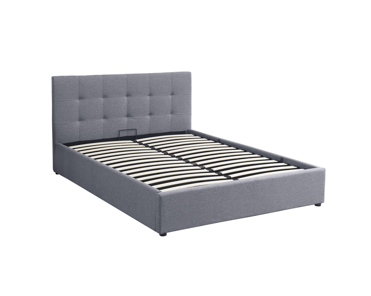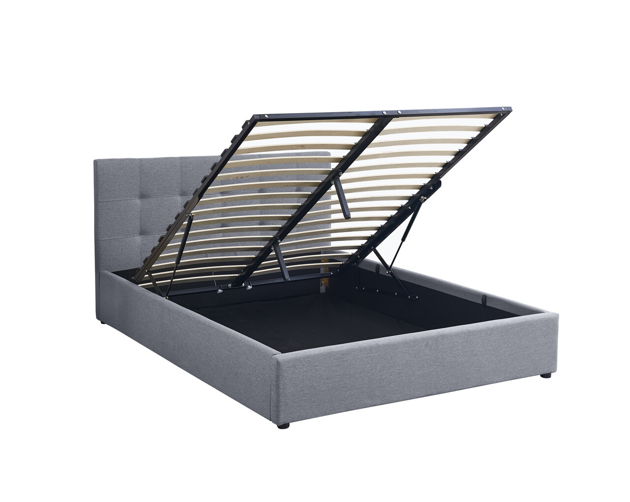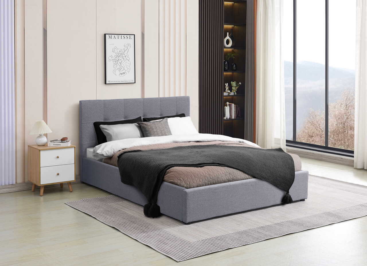 • Pat tapitat Carson, 160x200 cm, somiera rabatabila, spatiu depozitare, gri