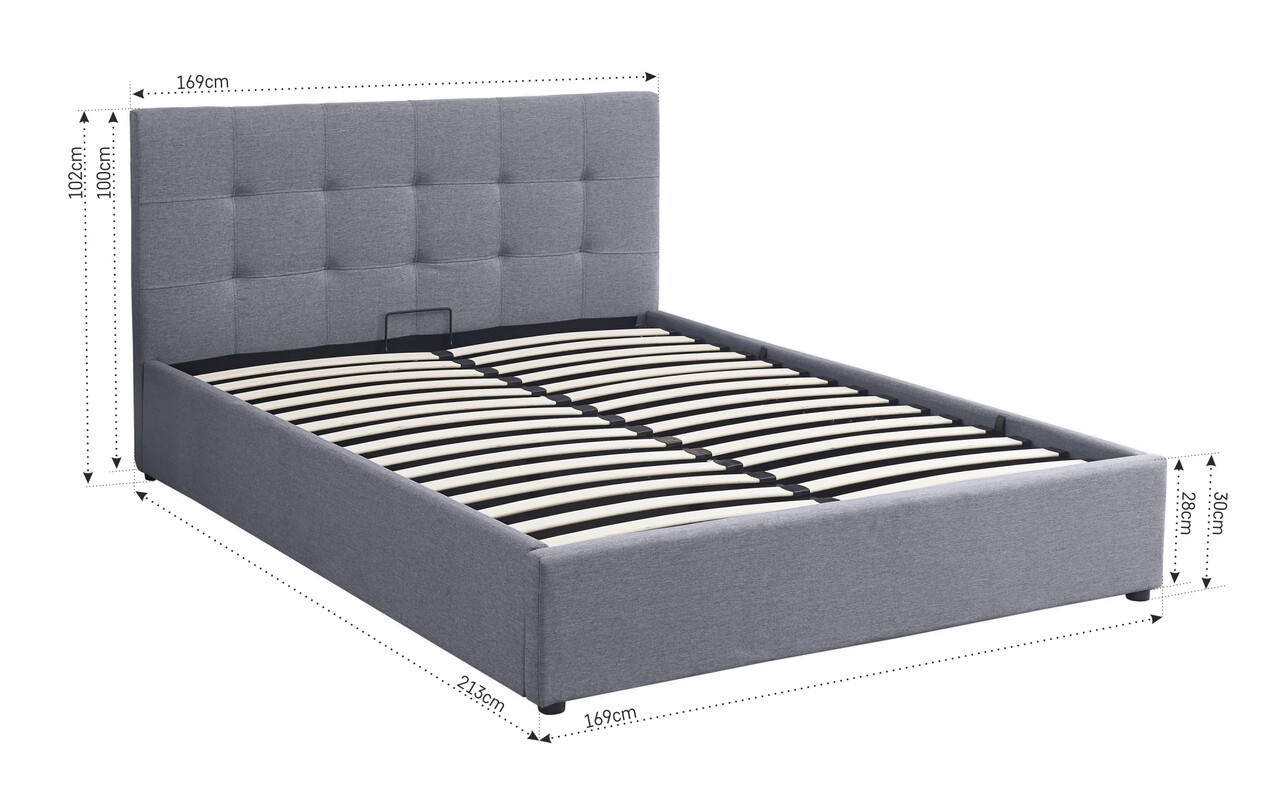 Dimensiuni: Cu o latime de 169 cm, o inaltime de 102 cm si o lungime de 213 cm, acest pat este ideal pentru a fi amplasat intr-un spatiu generos.