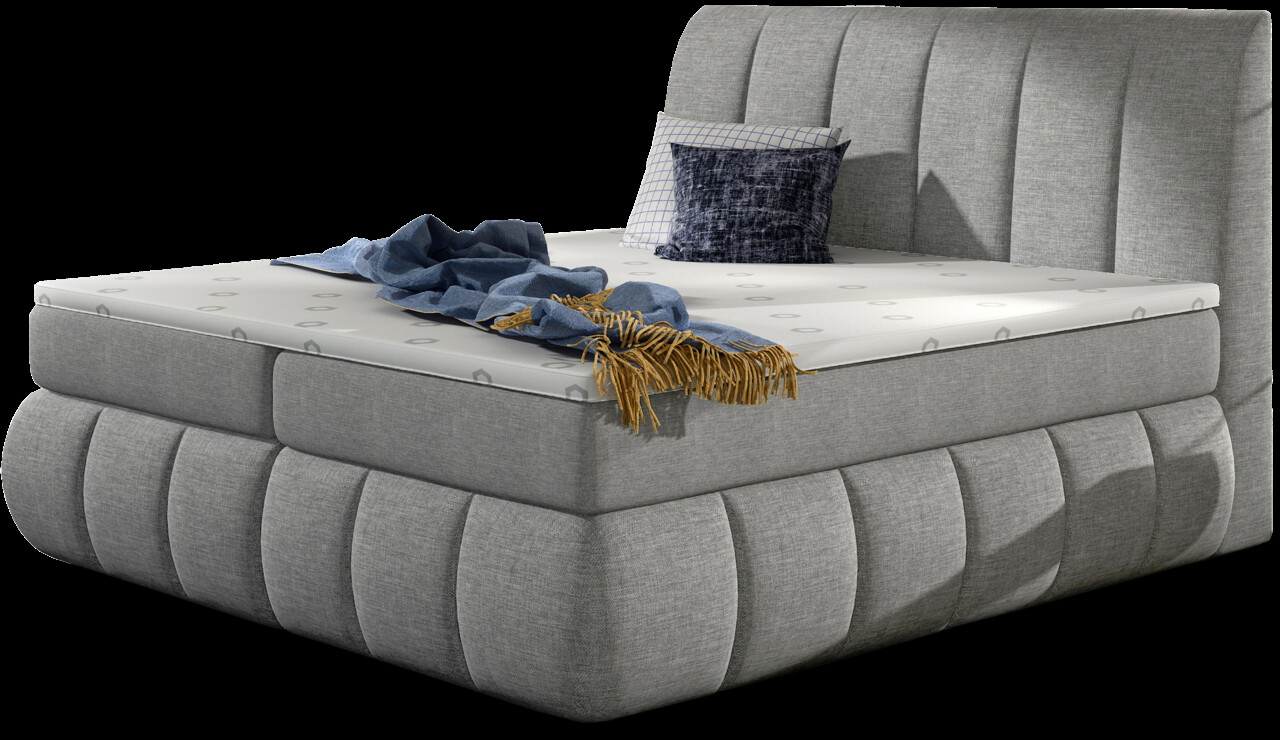 Pat tapitat cu lada depozitare, 140x200 cm, ELTAP, BVI-06-1.4, Vincenzo, lemn/poliester, gri deschis