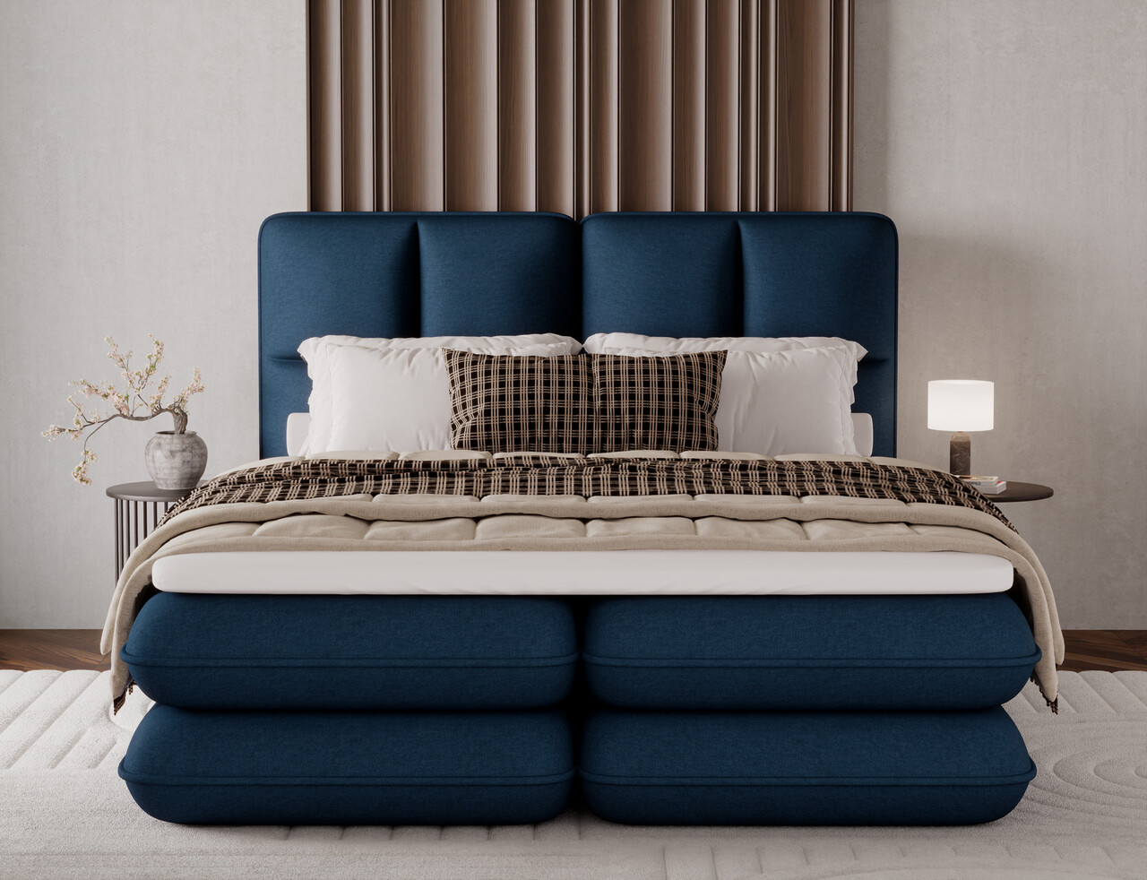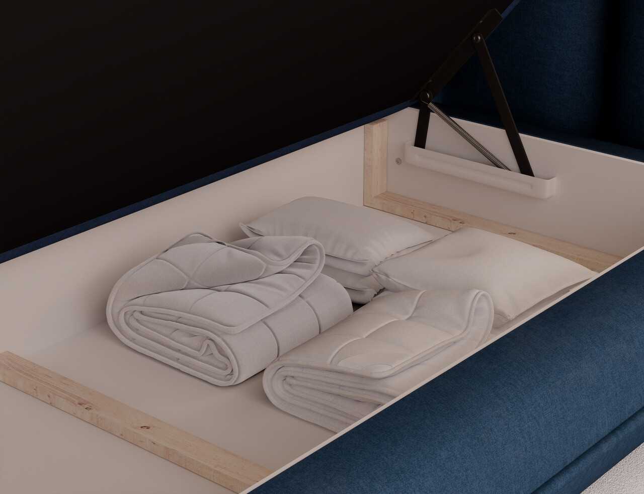 Pat tapitat cu lada depozitare, 140x200 cm, ELTAP, Tonila, lemn/poliester, albastru inchis