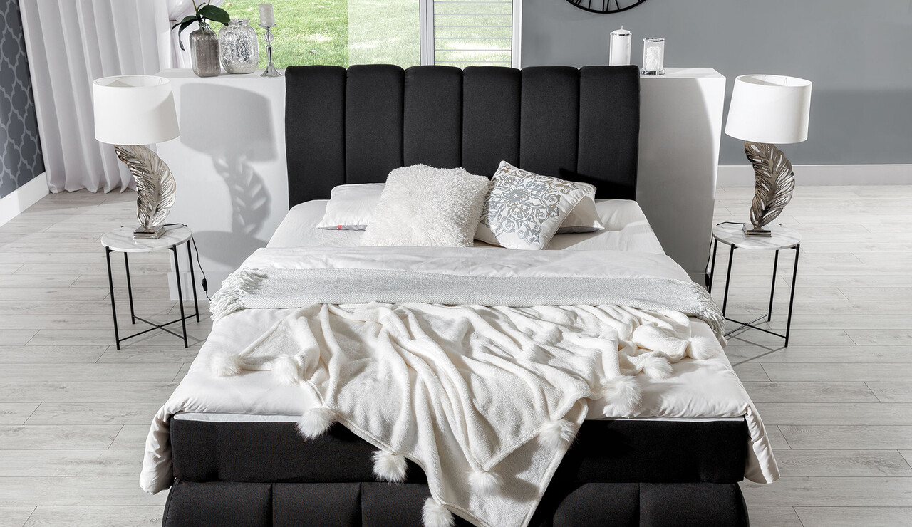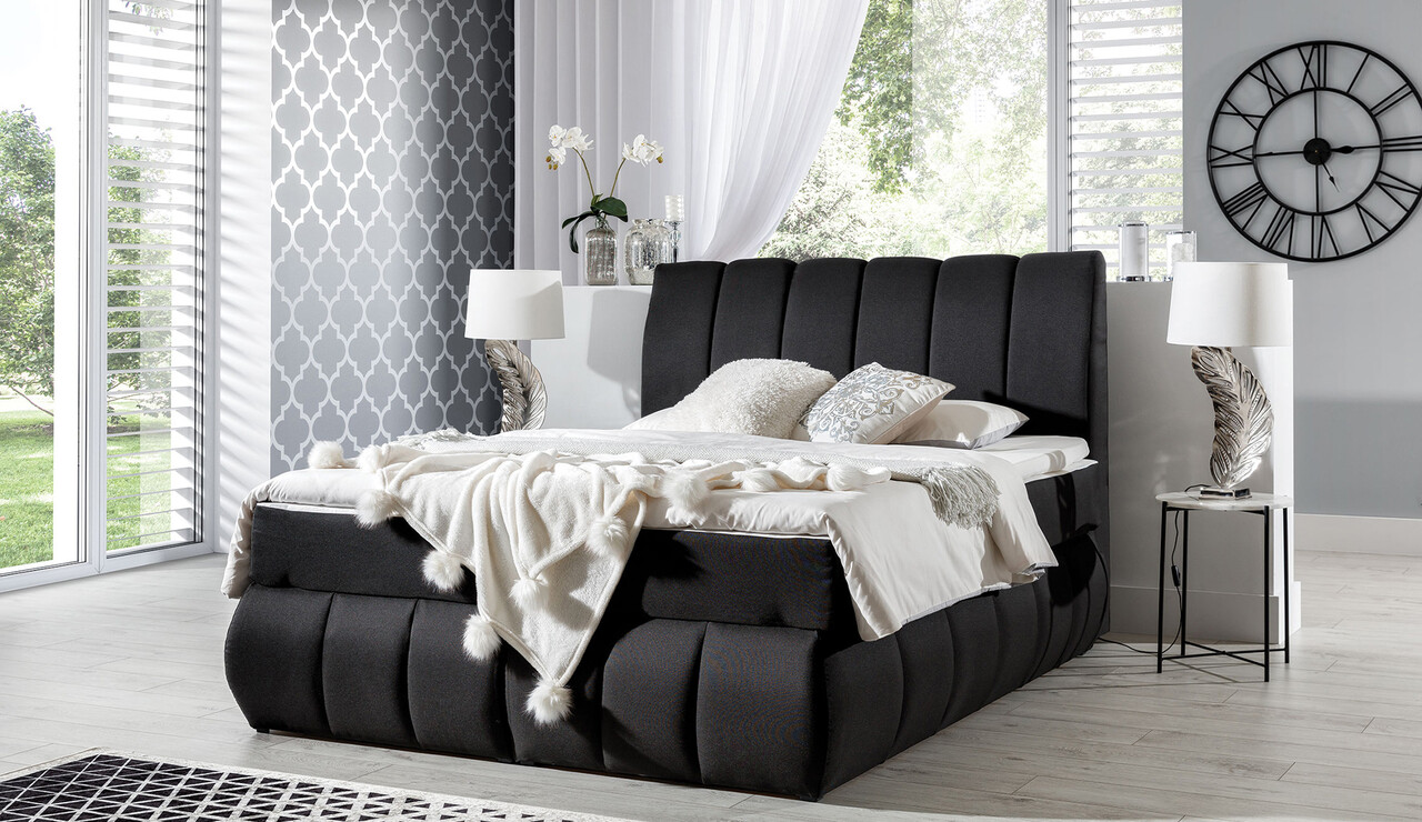 Pat tapitat cu lada depozitare, 180x200 cm, ELTAP, BVI-05-1.8, Vincenzo, lemn/poliester, negru