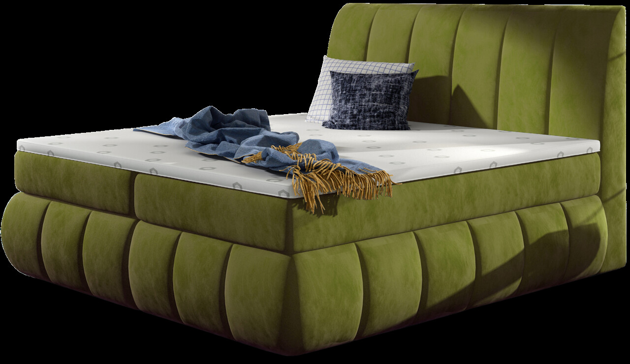 Pat tapitat cu lada depozitare, 180x200 cm, ELTAP, BVI-15-1.8, Vincenzo, lemn/poliester, verde olive