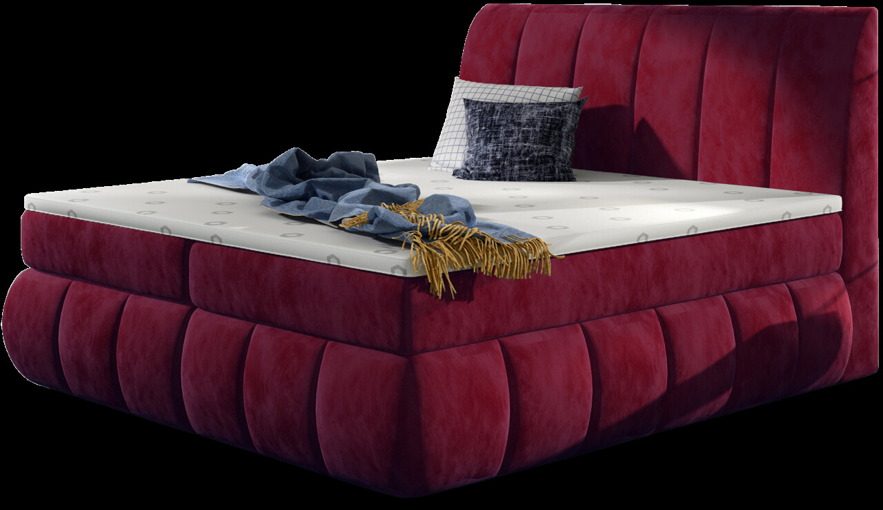 Pat tapitat cu lada depozitare, 180x200 cm, ELTAP, BVI-16-1.8, Vincenzo, lemn/poliester, rosu