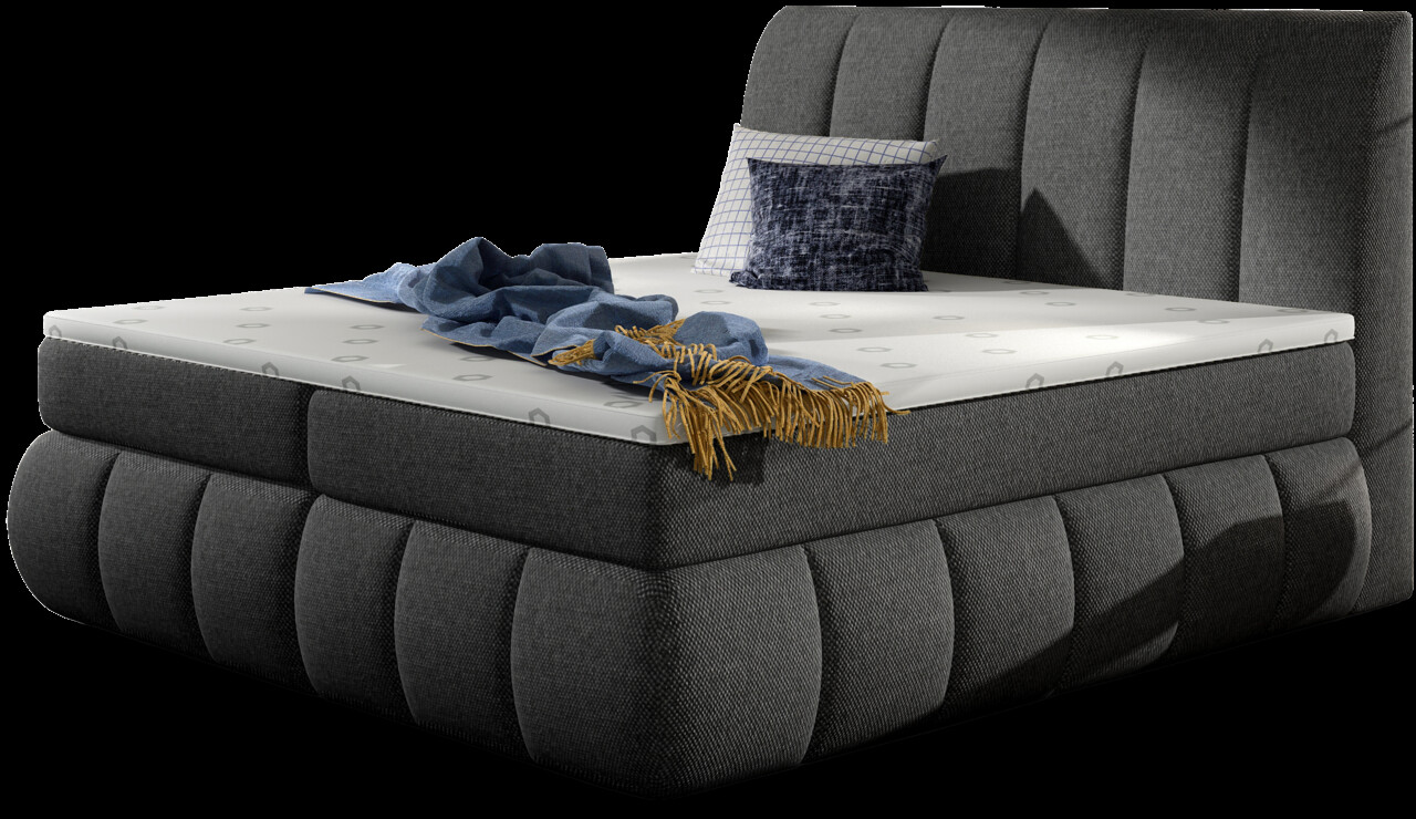 Pat tapitat cu lada depozitare, 180x200 cm, ELTAP, BVI-34-1.8, Vincenzo, lemn/poliester, gri inchis