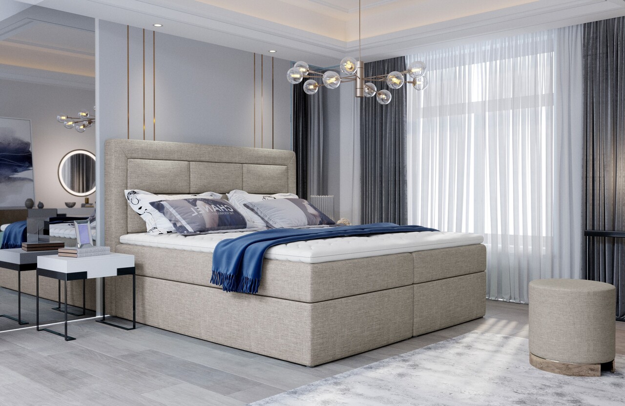 Pat tapitat cu lada depozitare, 180x200 cm, ELTAP, VIV-01-1.8, Vivre, lemn/poliester, bej inchis