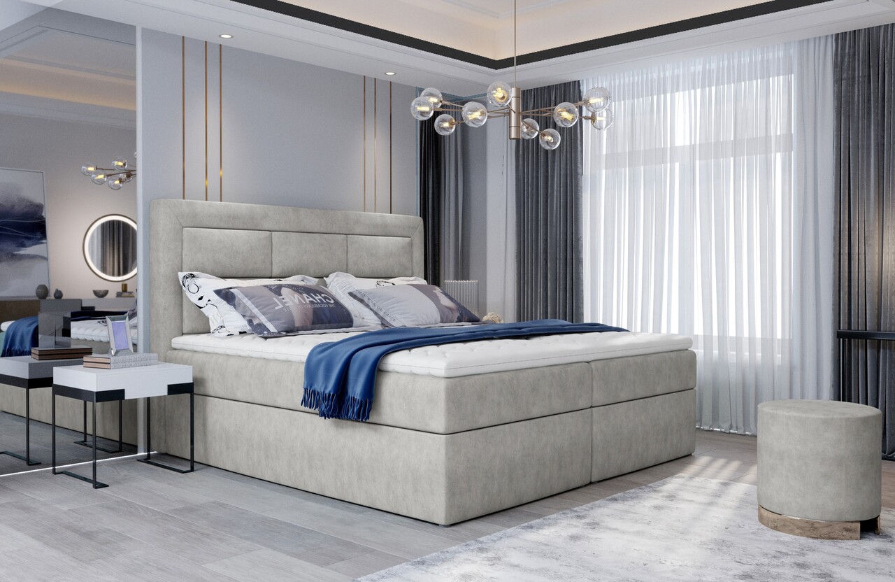 Pat tapitat cu lada depozitare, 180x200 cm, ELTAP, VIV-02-1.8, Vivre, lemn/poliester, bej deschis