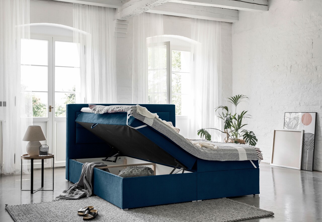 Pat tapitat cu lada depozitare, 180x200 cm, ELTAP, VIV-14-1.8, Vivre, lemn/poliester, albastru inchis