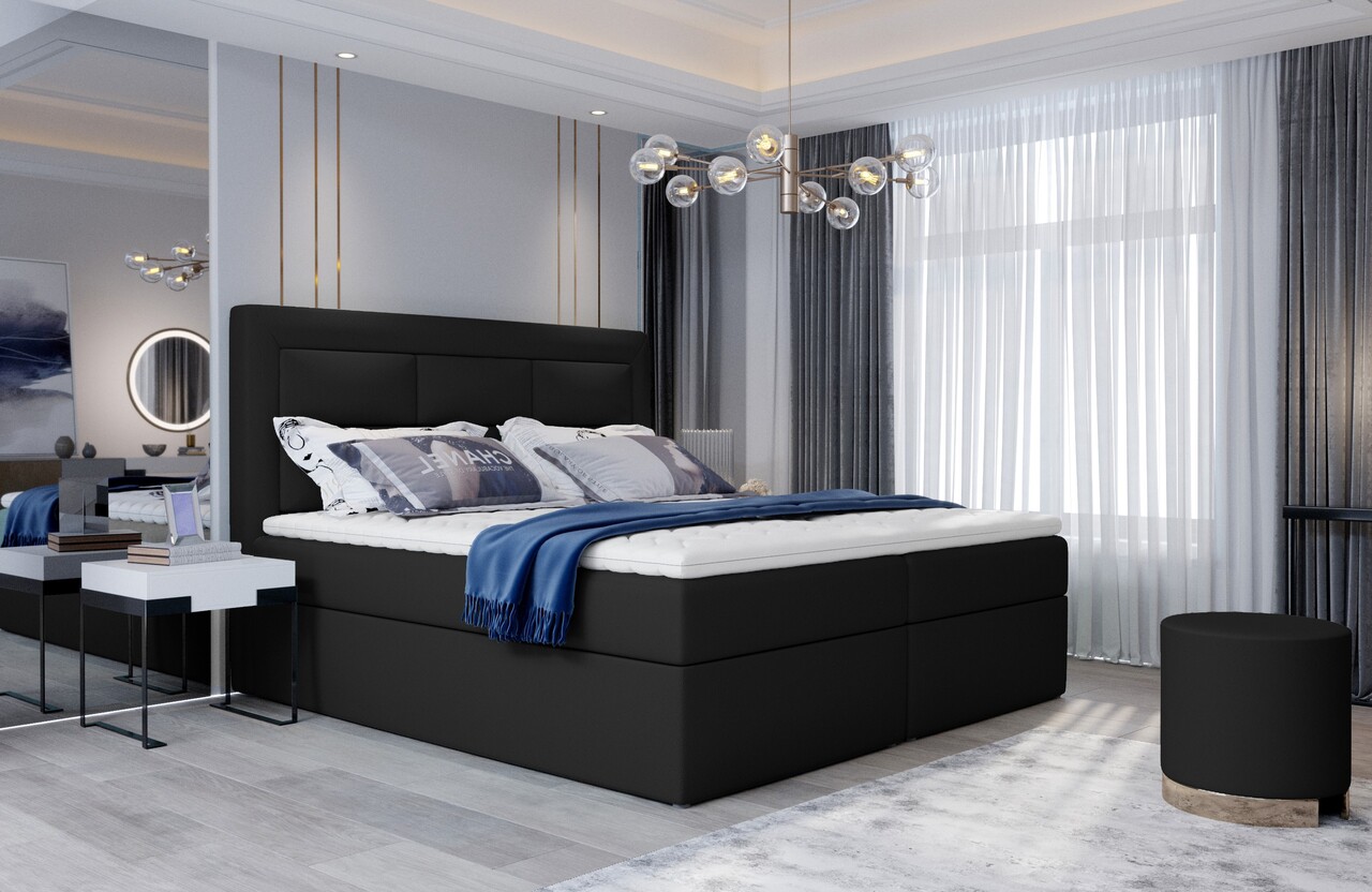 Pat tapitat cu lada depozitare, 180x200 cm, ELTAP, VIV-22-1.8, Vivre, lemn/poliester, negru