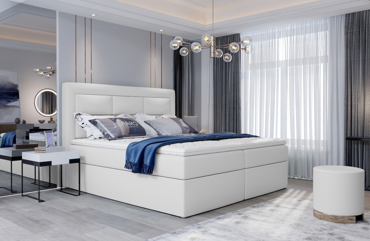 Pat tapitat cu lada depozitare, 180x200 cm, ELTAP, VIV-23-1.8, Vivre, lemn/poliester, alb