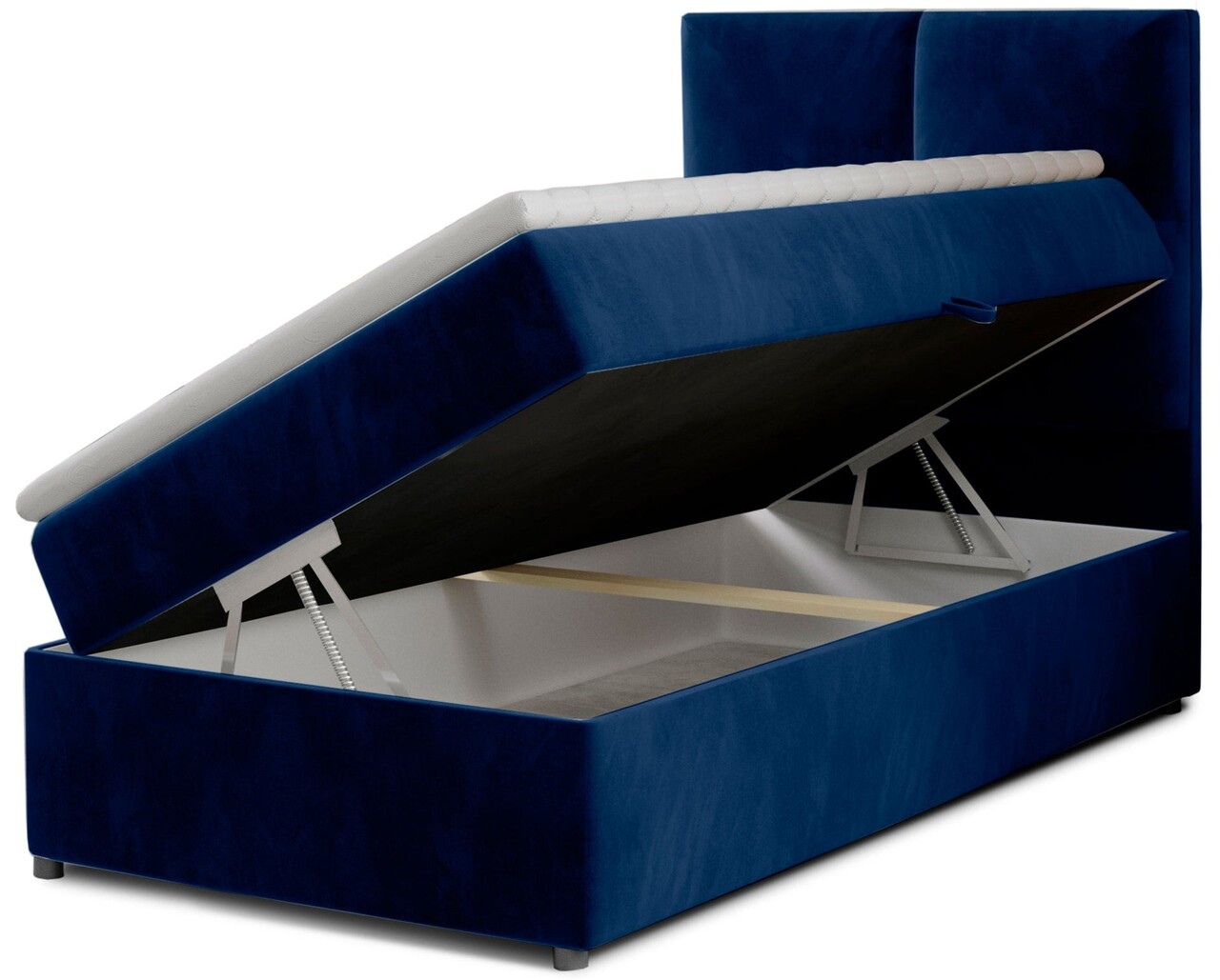 Pat tapitat cu lada depozitare, 90x200 cm, ELTAP, Riv-01, Rivia, lemn/poliester, albastru inchis