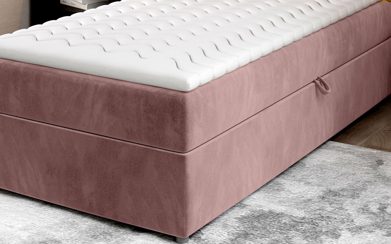 Pat tapitat cu lada depozitare, 90x200 cm, ELTAP, Riv-05, Rivia, lemn/poliester, roz
