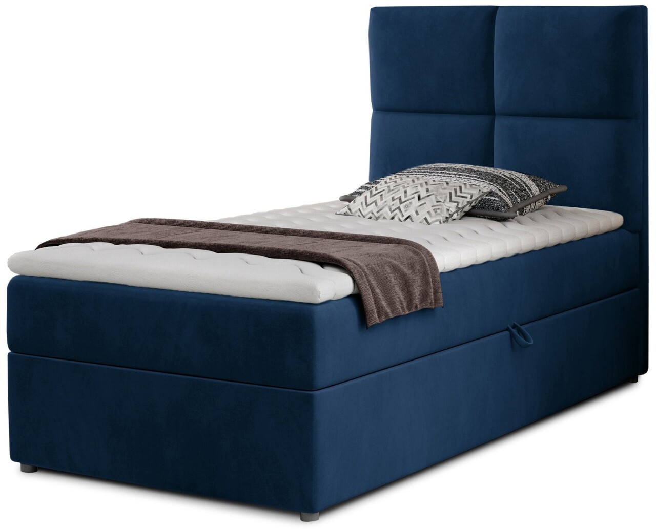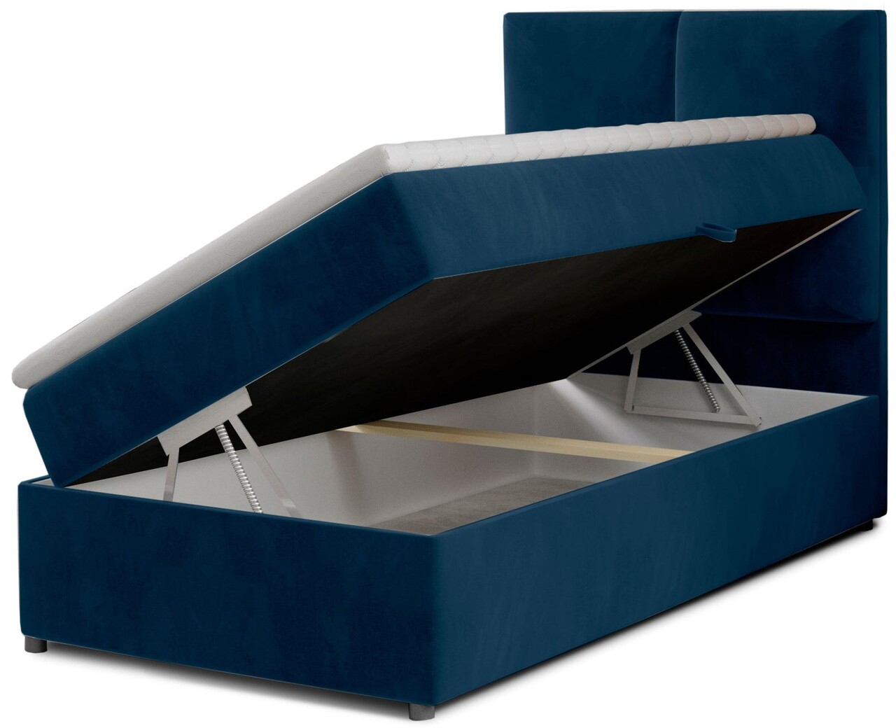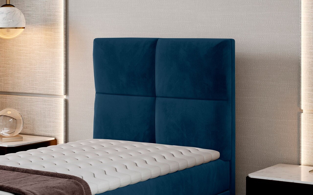 Pat tapitat cu lada depozitare, 90x200 cm, ELTAP, Riv-06, Rivia, lemn/poliester, albastru inchis